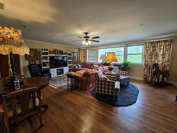 Country living in town! Welcome to this 2590 s/f 3-bed, 3-bath ranch style charmer situated on 2 acres in Nashville. Walk to the corner store in less than a minute or take a stroll through the lush landscaping in the private backyard oasis that includes a rose, day lily and herb garden. Grab a handful of rosemary before skipping up the steps onto the expansive 600 sq ft deck to grill your chicken for supper. Don't forget to turn on the party lights! If it is too hot to eat outside, step into the bright but cool sunroom, that overlooks the deck and fenced backyard. Then follow your nose into the newly updated kitchen where you might find the rest of supper simmering on the new 36-inch Forno stove with French doors. A dining room, 2 more (large)! living areas and 3 large bedrooms in the rest of the house are more than enough room for a growing family. Built-in, original hardwood floors, and cozy fireplace add to the ambience. Some of the many recent updates include a new roof (2025), new disposal, new dishwasher, and fresh paint in most rooms. Two double- wide gates offer easy access to the backyard. While a new sidewalk escorts you to the front door. Looking for RV parking? A large garage with lots of storage? Room to pull your pickup inside the gate? How about a chicken coop? No worries-- they are all here. Call now to schedule a showing before this home-sweet-home is gone with the wind.