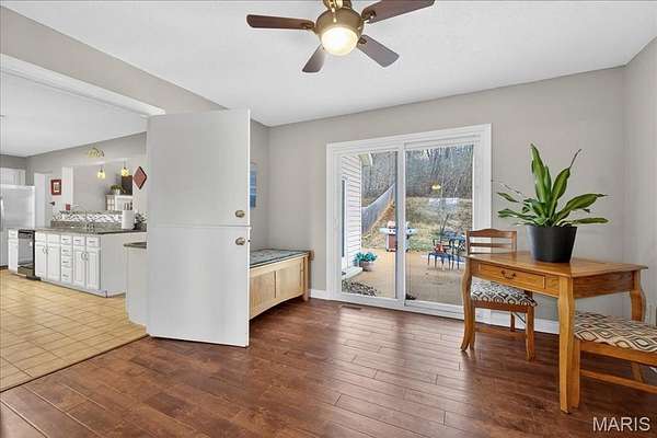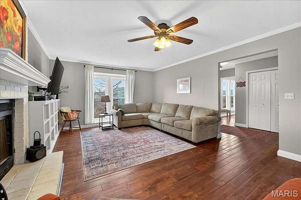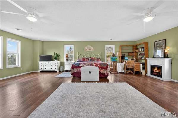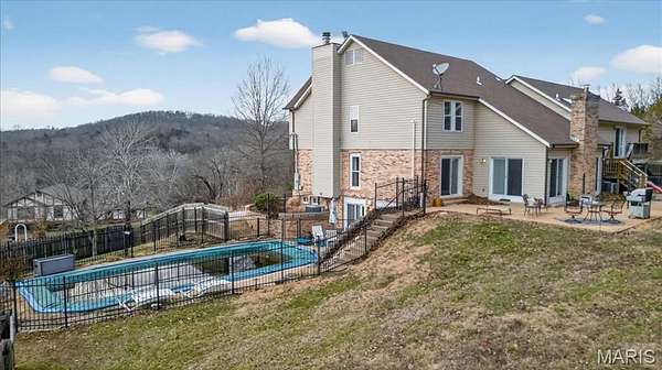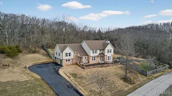 Beautiful 2-story home set on a breathtaking 5.25-acre lot backing to trees and overlooking a peaceful lake, complete with a private in-ground pool, your own secluded retreat! Perfectly positioned in a highly desirable location with easy access to neighboring towns of Wildwood and Eureka, you’ll enjoy the best of both worlds. Privacy and space with convenient access to shopping, dining, parks, and everyday amenities. Step inside to find a warm and inviting living room with a wood-burning fireplace and glass French doors leading to a private office. A formal dining room is accented by wood floors. The gorgeous kitchen offers granite countertops, a planning desk, wall oven, an electric cooktop, and a pass-through breakfast bar that opens to the vaulted family room with a second wood-burning fireplace and patio access, perfect for entertaining or relaxing while taking in the views. A mud room and powder room complete the main level. Upstairs, the sprawling primary suite showcases wood floors, two walk-in closets, private patio access, and a luxurious ensuite bath with double sinks, a walk-in shower, and a jetted tub. Three additional bedrooms, a full bath, and a laundry room complete the upper level. The walk-out lower level provides exceptional flexibility with its own private living quarters featuring a family room, full kitchen with solid surface counters and stainless steel appliances, a bedroom, a full bath, and additional laundry hook-ups. This versatile space is perfect for multi-generational living, older children, extended guests, or effortless entertaining. Additional highlights include an oversized 2-car garage, a newer roof, newer windows, newer carpet, and so much more. A rare opportunity to enjoy acreage, water views, and an unbeatable central location!