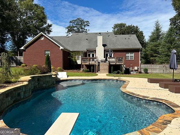 This stunning 4-bedroom, 2.5-bathroom home is located in the highly sought-after Union Grove School District in McDonough. The home seamlessly blends modern design with functional living spaces, making it perfect for a growing family or those who love to entertain. A welcoming front porch invites you into the home, offering a charming first impression. Step outside to the backyard and be greeted by a beautiful in-ground pool that was recently added in 2023. It's the perfect spot for relaxation or hosting summer pool parties. Surrounded by a spacious patio area, the pool area is ideal for outdoor living, with room for lounge chairs, dining areas, and even a BBQ setup. The pool pump is equipped for heating and cooling water. The backyard is fenced in for privacy, creating a peaceful retreat. The gazebo features power outlets for all your electrical needs, charging stations, and a built-in irrigation system to keep your lawn lush year-round in the backyard. The huge attic space would be great for an expansion for a room or just to use for storage.
