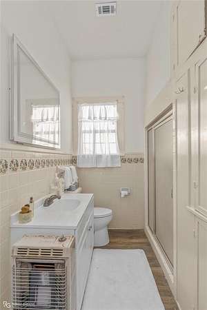 The kitchen is thoughtfully updated with quartz countertops and under-cabinet lighting, adding both function and charm. One of the home's most distinctive features is a second front entrance, often referred to as a "traveler's door," which opens directly into the front bedroom. Historically, this allowed the space to be separated and used independently, adding to the property's versatility.
