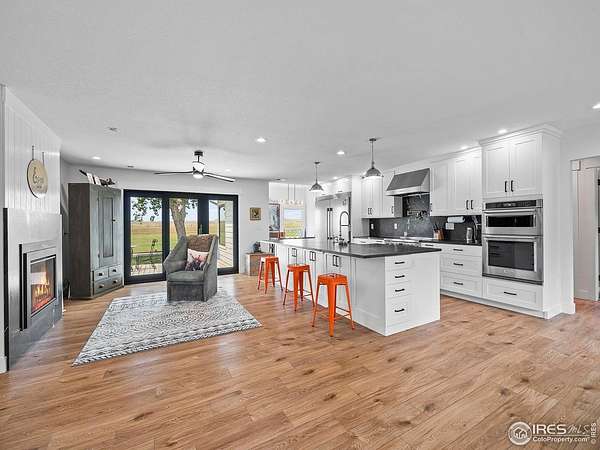 Open house changed to 02/01 from 1-3 pm. Seller is offering $25,000 in concessions to the buyer with an acceptable offer. Nestled on 40 acres with mountain views, this stunning 4-bedroom 3 bath home offers the perfect blend of rural charm and modern comfort. The beautifully remodeled home features an open, airy layout with updated high-end finishes throughout including LVP flooring, gas fireplace, designer chef kitchen w/ center island, quartzite countertops, induction range and 2 dishwashers creating a warm and inviting space to relax and entertain. Outside, the expansive land provides endless possibilities, complete with a 6249 sq ft 10 stall barn with private office for livestock or storage and includes 2 ponds w/ adjudicated water that runs year round to ensure lush, fertile grounds. Plenty of room for all of your toys in the 1800 sq ft 4 bay garage. All this plus solar panels, new HVAC system, tankless HWH and more. Whether you dream of farming, raising animals or simply enjoying the tranquility of country living, this property is a true gem that offers both practicality and beauty in abundance. One share of North Poudre Water available at an additional cost.