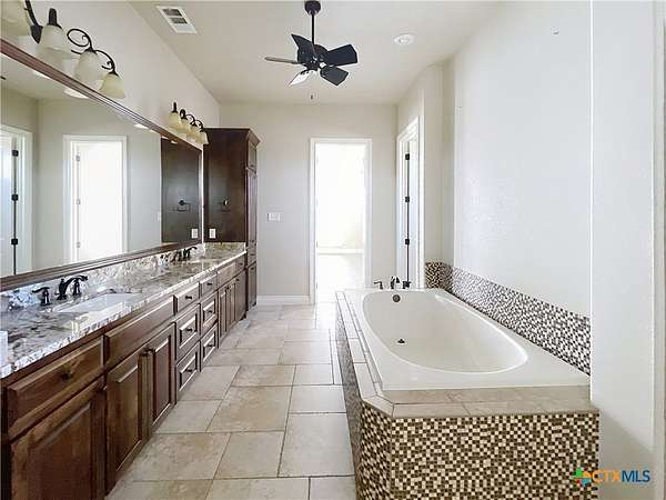 Wow, this is stunning. Custom built high end quality, all the bells and whistles. Popular split floor plan, the primary bedroom is large with a door that leads to the covered patio. The bathroom is amazing featuring a soaking tub and a fantastic walk in shower, large walk in closet, with a built in ironing board, shelving and built ins. The east wall in the living room is glass, there is a fireplace, open to dining and the kitchen. The kitchen has custom cabinets, island sink with plenty of storage. double oven, built in microwave, propane cook top, granite counter tops with tumbled tile back splash. There is a jack in Jill bathroom, hall bath with a nice walk in shower, there is a half bathroom off the patio. All the bedrooms have a ceiling fan and walk in closets. The patio has an outside kitchen and a fireplace, built in pool with a hot tub and water fall. 40 x 100 storage metal building. This is a must see