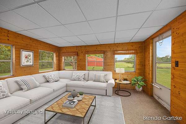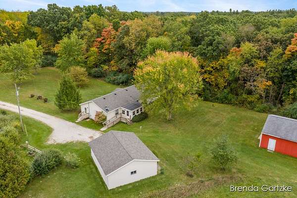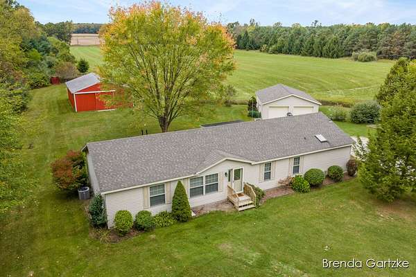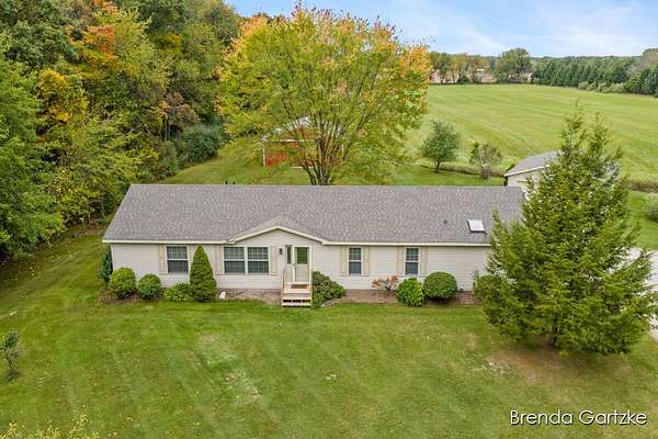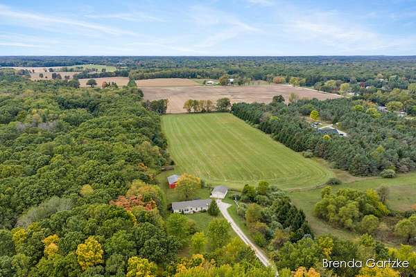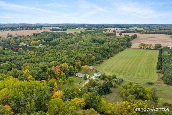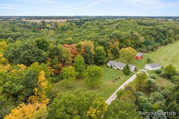 Beautiful home & setting with Rockford school option w/ NATURAL GAS all on 12 acres. The home was upgraded upon it's build with 2x6 construction, insulation and upgrade widows and drywallThis is a must see quality ranch with all new GE appliance, Rheem water heater & air. The Kitchen has generous solid cabinets, an island and a large pantry. This is all open to a family room with a nat'l gas FP with great space for gatherings. . The other side of the kitchen is the dining area and a formal LR leading to the primary bdrm w/ walk in closet & 2 more bedrooms. The slider in the family room leads to a bright 3 season porch to enjoy the views & abundant wildlife. Upon entering a side door, you have the drop room & utility area, & bathroom. The awesome property offers a 30 x 40 pole barn with electric & cement & a 2 stall garage with a back work room.