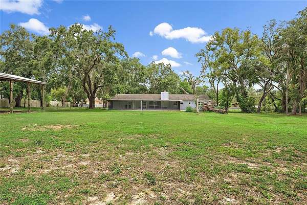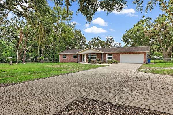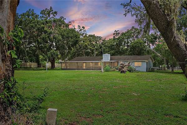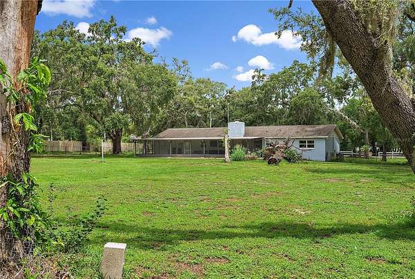 Under contract-accepting backup offers. Will Rogers' old quote still rings true: "BUY LAND ... they aren't making any more of the stuff!" ... as Hillsborough Co. gets more and more built out, "room to stretch" and a few extra feet between you and your neighbors is in HIGH DEMAND (and short supply!) ... This offering provides you Country Living with City Convenience ... Come check out your future new 4-bedroom, 2-bath 2-Car GARAGE Homestead located in unincorporated Hillsborough County ... Giving you just Under 2 Acres of LAND! ... The lot's dimensions are approx 250' WIDE by approx. 338' DEEP ... this lot and its park-like backyard feels like your own personal nature preserve ... or Playground or Work Area, etc. depending on your personal preferences / needs and maybe how you'd USE the LAND and the 30' x 50' Pole Barn and the 20' x 30' metal barn ... Need a covered spot for your RV, maybe? ... the Pole Barn has water and electricity already run to it ... Inside, you will enjoy a BEAUTIFULLY UPDATED and NEWER KITCHEN (redone in 2021) -- STAINLESS appliances and SOLID SURFACE counter tops ... VERY thoughtfully designed and NICELY done... it's the heart of the home -- perfect for everyday living and entertaining alike ... The home had all windows replaced and significant updating completed in 2018 -19 ... AC replaced in 2023 ... Tile Floors throughout ... ensuite master BR ... it is move-in ready, with generous 1549 Sq Ft of living space under air conditioning - and JUST under 3,000 TOTAL Sq Ft... roomy 2-car garage and a HUGE Screened Porch / Lanai that's over 50' LONG x about 13 1/2 feet deep ... with beautiful views of your backyard's "Park Like Setting" ...No HOA, no hassles -- just fresh air, privacy, and room to live the way you want ... Come experience the best of both worlds!