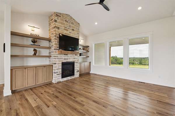 Modern Farmhouse on 29 Acres - Peaceful Country Living Welcome to your dream retreat! This custom-built modern farmhouse sits atop a gentle hill with sweeping views and 29 acres of beautiful land-partially fenced and perfect for horses, livestock, or hobby farming. Enjoy open pastures, direct water access, and space to explore, hunt, or simply relax in nature. Inside, 10-foot ceilings and large windows fill the home with natural light. A vaulted living room with a floor-to-ceiling fireplace creates a warm, inviting space. The gourmet kitchen features double ovens, premium finishes, and a hidden walk-in pantry-perfect for gatherings or everyday comfort. Thoughtful design includes a mudroom, laundry with master closet access, and an oversized 3-car garage with plenty of storage. Located in a vibrant community with great schools, this turnkey property offers space, serenity, and style. Bring your animals and your dreams-this country haven is ready to welcome you home.