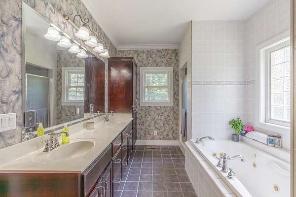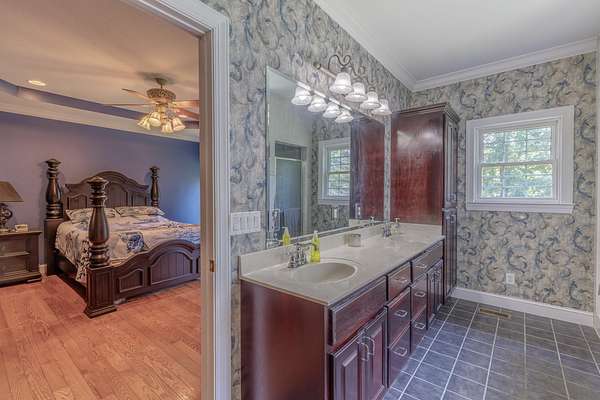- Cathedral Ceiling(s), Ceiling Fan(s), Coffered Ceiling(s), Crown Molding, Double Vanity, Eat-In Kitchen, En Suite, Entrance Foyer, Granite Counters, High Ceilings, High Speed Internet, Kitchen Island, Natural Woodwork, Open Floorplan, Pantry, Recessed Lighting, Separate Dining Room, Separate Shower, Sitting Area, Tray Ceiling(s), Tub/Shower Combo, Vaulted Ceiling(s), Walk-In Closet(s), Whirlpool Tub