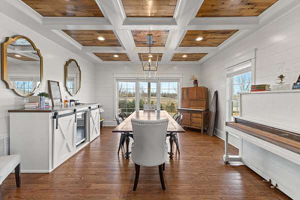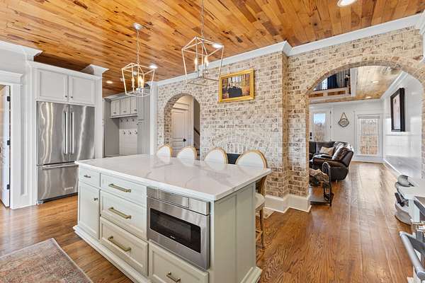 The custom-built main home offers 5 bedrooms, 4 full baths, with a spacious open floor plan. Very large bedrooms all connected to bathrooms. The chef’s kitchen is built for entertaining with a KitchenAid 60-inch six-burner range w/ double ovens & griddle, extensive custom cabinetry, quartz countertops, & a huge island overlooking the great room. A double-sided fireplace connects the kitchen & living area. The oversized primary suite is on the main level, & the home features beautiful custom woodwork, shiplap walls, hardwood floors, & tile throughout.