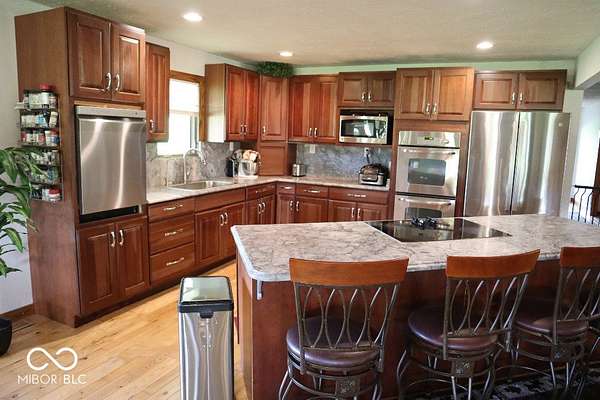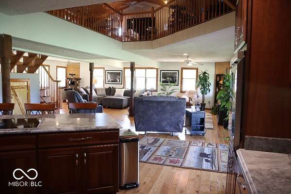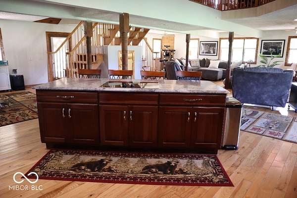 Country property on 9.77 acres with a private & fully stocked 2-acre pond, mature bass/also perfect for swimming. The home has a complete wrap-around deck, and an additional large second-story deck off the master bedroom. Huge gazebo also connected to house for entertaining. The house is a 3-4 bedroom house, with 5 indoor parking spaces, and plenty of outdoor parking. * Peaceful, secluded land full of wildlife. No restrictions/Local garbage collection/EXCELLENT internet svc, even for heavy gamers/heavy usage. 3 raised garden beds, one w/ annual asparagus. One whole-house generator plug on the back porch. Super reliable 280-foot well, brand new pump and piping installed in 2021, never has even hinted at running low, even with heavy usage (3 kids, 2 adults, livestock, etc., never had a single issue). * New HVAC system installed February 2025, controllable on Smartphone and still under warranty, new ductwork under house February 2025. Two new bathrooms. Beautiful kitchen w/: Abundant cabinet space, new full-size single-basin stainless kitchen sink, new raised dishwasher/no bending over to load/unload, new microwave, double oven, all stainless steel appliances, huge island with centered stovetop. Downstairs layout: Spacious, open-concept kitchen & living room, dining area, 1 full bath, 3-4 bedrooms. Three is listed in the ad, but technically, it is 4 total bedrooms. - Upstairs layout: Another spacious living room, giant master bedroom with another brand new full bath. Hardwood floors throughout. * 2 outbuildings (Building one is 32X51, Building 2 is 30X69, concrete floors. One outbuilding features its own central air/heat system, as well as an additional large, climate-controlled storage room. One huge dog kennel (20X15), currently used as a chicken coop. -All photos are current as of July 2025. A truly beautiful property and a rare find.