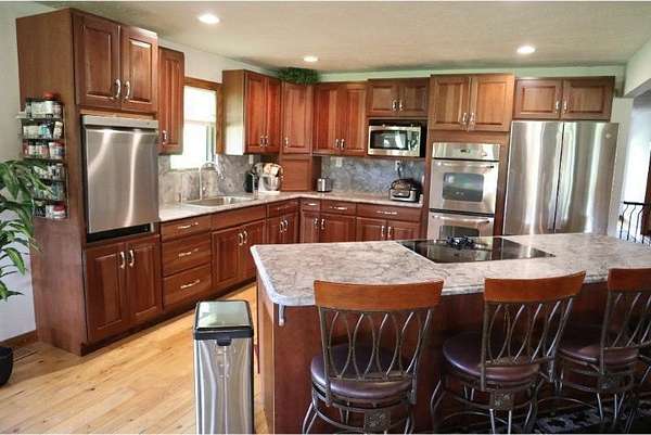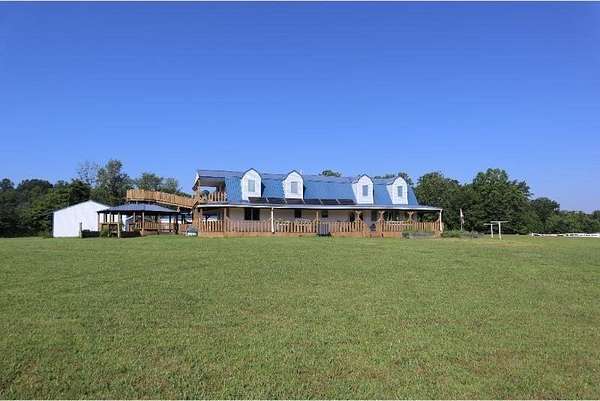 Country property on 9.77 acres with a private & fully stocked 2-acre pond, mature bass/also perfect for swimming. The home has a complete wrap-around deck, and an additional large second-story deck off the master bedroom. Huge gazebo also connected to house for entertaining. The house is a 3-4 bedroom house, with 5 indoor parking spaces, and plenty of outdoor parking. o Peaceful, secluded land full of wildlife. No restrictions/Local garbage collection/EXCELLENT internet svc, even for heavy gamers/heavy usage. 3 raised garden beds, one w/ annual asparagus. One whole-house generator plug on the back porch. Super reliable 280-foot well, brand new pump and piping installed in 2021, never has even hinted at running low, even with heavy usage (3 kids, 2 adults, livestock, etc., never had a single issue). o New HVAC system installed February 2025, controllable on Smartphone and still under warranty, new ductwork under house February 2025. Two new bathrooms. Beautiful kitchen w/: Abundant cabinet space, new full-size single-basin stainless kitchen sink, new raised dishwasher/no bending over to load/unload, new microwave, double oven, all stainless steel appliances, huge island with centered stovetop. Downstairs layout: Spacious, open-concept kitchen & living room, dining area, 1 full bath, 3-4 bedrooms. Three is listed in the ad, but technically, it is 4 total bedrooms. - Upstairs layout: Another spacious living room, giant master bedroom with another brand new full bath. Hardwood floors throughout. o 2 outbuildings (Building one is 32X51, Building 2 is 30X69, concrete floors. One outbuilding features its own central air/heat system, as well as an additional large, climate-controlled storage room. One huge dog kennel (20X15), currently used as a chicken coop. -All photos are current as of July 2025. A truly beautiful property and a rare find.