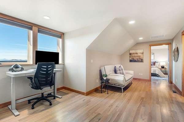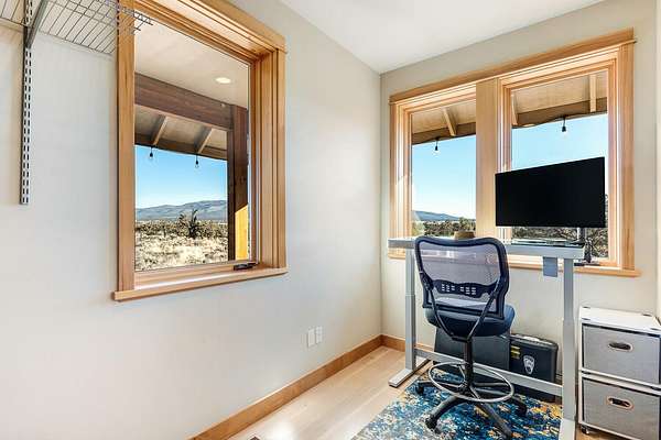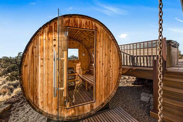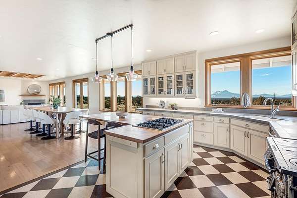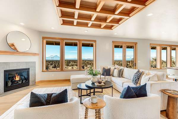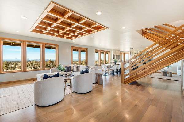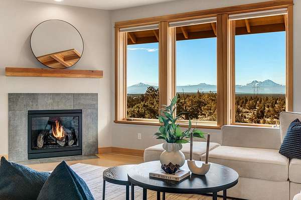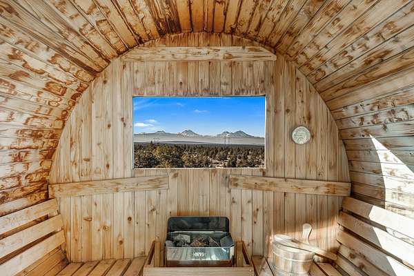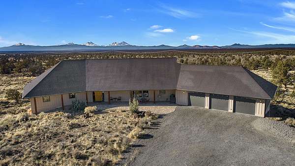 Perched above the high desert landscape on 40 acres, this property offers privacy and sweeping 360 views just 25 minutes from Bend. Designed to embrace its surroundings, the home features 41 expansive windows capturing panoramic vistas: from sunrise over Powell Butte to sunset across the Cascades. A private drive with two gated entrances leads to the home's modern floor plan with a main-level primary suite, an expansive great room, a three-car garage with EV charging, and speedy Starlink internet. The back deck becomes an outdoor oasis, complete with a sauna and hot tub positioned for evening alpenglow and stargazing. A versatile outbuilding supports equestrian or recreational use, while the fire pit, RV hookup, and classic Airstream (also for sale) elevate the outdoor experience. A one-of-a-kind retreat defined by sweeping views, exceptional privacy and a direct gateway to thousands of acres of public land that shape Central Oregon's outdoor lifestyle.