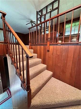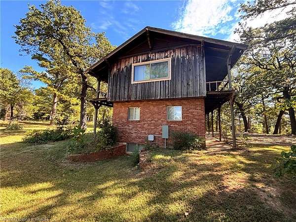 Est $801/moOne owner custom two story home with 6 t/- acres. This home's main level has a bathroom and bedroom. The basement has a washer/dryer area, water heater and furnace, lots of storage space and an exterior door with an area for a pantry. Upstairs has the living area, kitchen, bedroom and bathroom with 2 sets of sliding doors to an outside balcony.