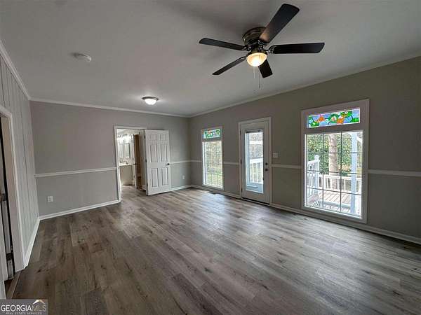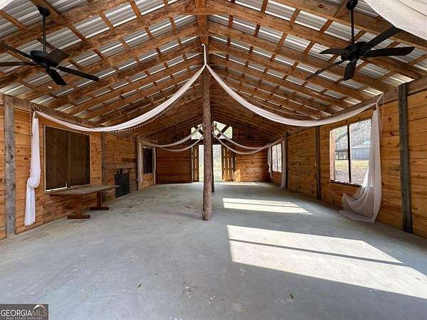 Recently updated and refreshed, this 3 bedroom 2 bathroom split bedroom floorplan with large living room and generously sized primary bedroom which offers an updated ensuite including a large walk-in closet, 4 piece bath with double vanity and stainted glass transome window accents. This property has so much to offer. With over 11 acres, a sunroom, covered front porch, a pond, sheds, firepit, back deck with built in pergola, huge barn originally created as an event space that could potentially be converted to a large workshop. The lans has lots of beautiful plants, shrubs and trees and outdoor space to enjoy. There is even a small cabin near the pond for rustic camping or glamping and with a little work could potentially be used as an income producing short term rental. Owners/Listing Agents are licensed Real Estate Agents in the State of Georgia.