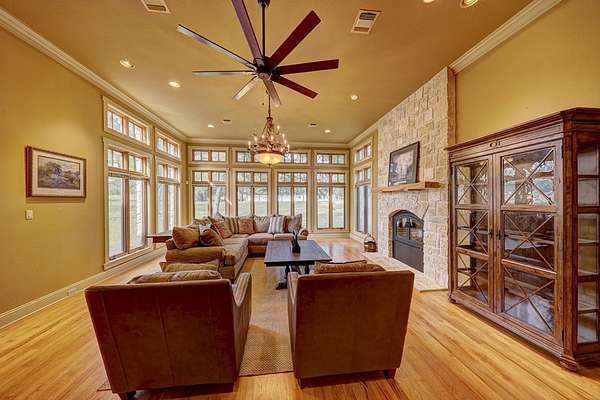 This timeless 4 bedroom, 2.5 bath home on 1.78AC is one of the most recognizable properties in Kerrville. The welcoming main floor offers a window-lined living room with wood-burning fireplace Xtrodinair, formal dining area, study/office, half bath and main bedroom with bath. Three bedrooms, one full bath and an additional second living room are located on the second floor, along with an oversized bonus room on the third floor providing a versatile space for recreation or storage needs. The kitchen features custom cabinets, Yellow River granite and Pennie Mosaic backsplash. The main bedroom and bathroom offer marble floors and shower, two walk-in closets and copper sinks/tub. The three-car garage, complete with half bath and 850SF storage space, allow for a variety of customization options for your use. Overall, this exceptional home has been well maintained and has recent updates including fresh staining on all exterior wood trim, new front yard sod and sprinkler system, and newly planted Cottonwood trees. The versatile property is currently zoned RT (ResidentialTransition) which allows for various residential and commercial applications. *See attached docs for RT land use table.