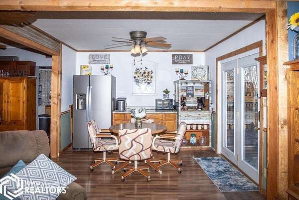 This charming farmhouse style home sits on 4.6 acres just 1 mile from the center of town and only 2 miles from a small rec lake, giving you that country feel without being too far. Inside you'll find 4 bedrooms and 1 full bathroom with warm, cozy farmhousevibes throughout the main living space. The wooden deck overlooks the playhouse and part of the land, making it the perfect spot to relax. The entryway is currently being used as a dog area, but could easily be converted into a mudroom. Outside, there's 1 acre of farmable ground currently planted in alfalfa. The large barn features a steel roof and includes two separate heated shops. Each shop has its own furnace, three access garage doors for vehicles or tractors, and a 2-stage air compressor. There's also a two-car detached garage with an attached shed, plus another shed in the back that has a 12-foot door tall enough for a truck. Most of the sheds could use a little TLC, but they are fully usable. Privacy trees line the yard and there are two 500-gallon propane tanks, one of which is dedicated to the barn. The septic system is being sold AS-IS, and the bins are not part of this property. Come and give this house a tour!