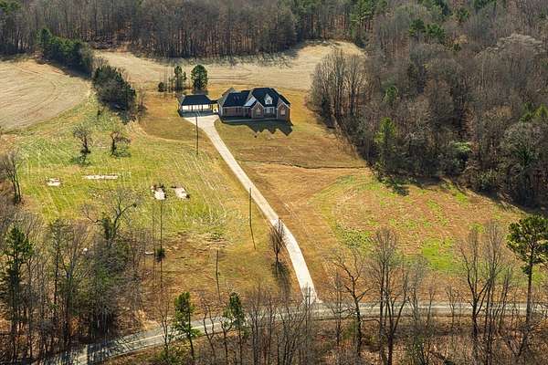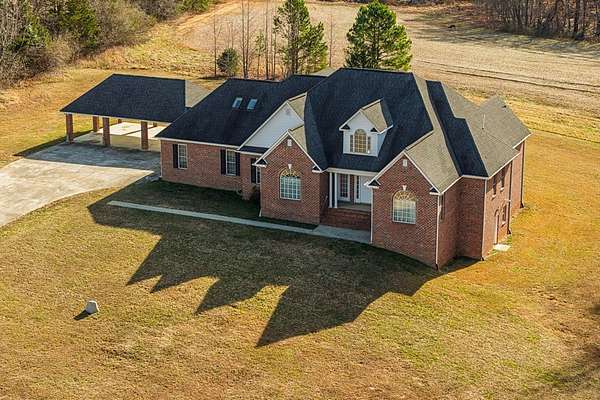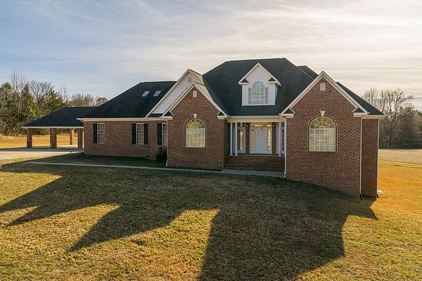 Discover your dream home situated on 78.45 acres, offering an ideal opportunity for a sprawling country estate. The property is enhanced by a private pond, providing a secluded retreat where you can fish, relax, and enjoy the water view. The brick home was built in 2004 and boasts 3,665 sq ft of living space. Inside there's a spacious open floor-plan with formal dining room, kitchen with breakfast area, office, flex room, second kitchen, 4 bedrooms, 2.5 bathrooms. Also, there's an additional flex room upstairs. The home features hardwood floors, and includes a full walk-out basement providing potential for an additional 3,047 sq ft of living space, storage, or a workshop. You'll have ample parking and storage for your vehicles, equipment, and/or hobbies with the 2 car attached garage and 3 bay attached carport. The site has a second well & septic where there once was another home. Call today to view this beautiful home.