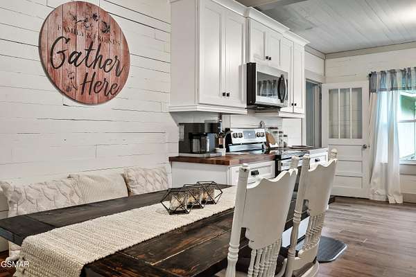 Seller will provide $7,500 CREDIT to ADD Spa/Hot Tub! Perfectly located between Pigeon Forge and Gatlinburg, this beautifully remodeled creekside country cottage offers timeless charm with modern conveniences on over 5 acres of serene land. This fully renovated home retains its character with carefully preserved details, while blending in thoughtful updates throughout. The 3-bedroom, 2-bathroom layout features a comfortable living room with a cozy fireplace, a spacious eat-in kitchen with butcher block countertops and modern appliances, and a warm, inviting design that makes this property truly one of a kind. Enjoy your mornings on the front porch rocking chairs, just steps from the softly bubbling creek, or spend evenings under the stars gathered around the fire pit. The expansive yard provides plenty of space for outdoor fun and relaxation, all framed by a historic barn that adds to the property's authentic Appalachian charm. Whether you're seeking a peaceful primary residence, a private mountain getaway, or an investment STR, this property combines location, history, and modern comfort. Minutes from Dollywood, Gatlinburg, The Great Smoky Mountains National Park, and area shopping and attractions this home is perfectly tucked away in a quiet, natural setting. Come experience the magic of Smoky Mountain living at this creekside retreat!