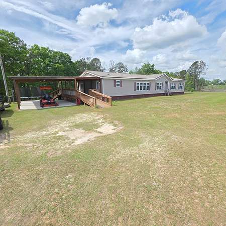 Well-maintained 4-bedroom, 2-bathroom home with brick skirting, and a metal roof that features a split bedroom plan and open living area for comfortable living and making memories. You will also find a very nice side and back covered patio, an attached carport, and a fenced backyard to enhance your outdoor time. Home is located on a beautifully manicured 10.5 +/- acre parcel perfect for a garden, chickens, a few horses, cows or whatever you desire. Property already has some fencing and two outbuildings for storage and animals with power and water. A large pond/lake is located behind the property with the possibility to purchase a fishing lease. Location of this property offers quiet living and is located just minutes from Hwy. 231 which offers an easy commute to Troy, Montgomery, Ozark and Dothan. If you're wanting space inside and outside along with quiet, peaceful living you need to see this property!