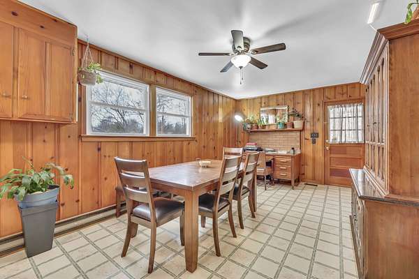 The main house features a classic layout with timeless touch including warm wooden cabinets in the kitchen that add character and charm. The unfinished basement offers a blank canvas to suit your needs, whether it's a home gym, playroom, workshop, or additional storage space.