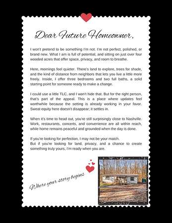 Located in Ashland City with a quick, workable commute to Nashville, this property offers space and freedom while still maintaining access to work, dining, and conveniences. Ideal for buyers who prioritize acreage, affordability, and potential.