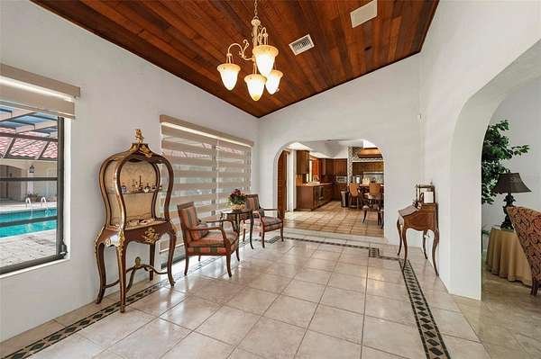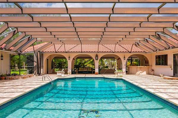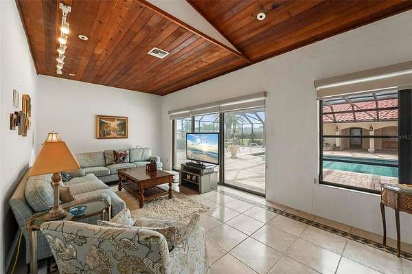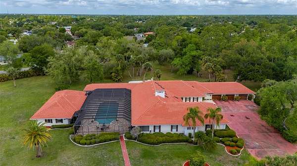 Set on a rare and expansive 5.4-acre parcel in the heart of town, this private gated estate unfolds as a world of its own, offering a 5,800sqft MAIN residence, a 3,000sqft GUEST HOUSE, and a separate 2 bedroom, 2 bathroom CABANA with its own kitchen. Across these distinct living spaces, the property features a total of 9 bedrooms, 8.5 baths, and 3 kitchens, creating an exceptional opportunity for a multigenerational estate, family compound, or income-producing property with flexible living arrangements. The true rarity of this property lies in its combination of acreage and location. Large parcels this close to shopping, dining, medical facilities, and everyday conveniences, with easy access to Punta Gorda Airport and I-75, are increasingly hard to find, yet this estate offers both privacy and accessibility. A private gate opens to a hedgerow-lined drive, introducing a sense of arrival that defines this unique property. The architecture reflects a Spanish Mediterranean style, rich with old world charm, timeless design, and custom architectural details throughout. The main residence is both spacious and inviting, designed with a traditional floor plan that emphasizes privacy and function. Each bedroom suite is set apart, while the formal living room, formal dining room, and Florida room are thoughtfully separated, creating defined spaces ideal for both everyday living and entertaining. The formal living room features a wood burning fireplace, while the dining room is enhanced by a mirrored wall that adds light and dimension. At the heart of the home, the chef’s kitchen blends European design with modern convenience. A large tile inlaid island serves as a central gathering space, complemented by high end stainless steel appliances and commercial grade features, making it ideal for entertaining, hosting, and culinary enthusiasts. Plus, a 6x17 WINE CELLAR temperature controlled with seperate seating area above it. Within the main home one of the guests bedrooms also has a private entrance, a seperate living room, and it's own bathroom en-suite. Outdoor living is equally impressive, with a 50X100 foot lanai that frames a RESORT STYLE POOL, covered lounge areas, and a fully equipped summer kitchen. This outdoor entertaining space is designed for large gatherings, events, and year round enjoyment. The cabana offers additional guest accommodations with its own kitchen, 2 bedrooms, 2 bathrooms, and a dedicated barbecue area and with French doors overlooking the pool, enhancing the property’s versatility. Nestled among mature oak trees, the guest house provides a private and comfortable retreat. This GUEST HOME includes 3 bedrooms, 3.5 baths, a two car garage, and a wood burning fireplace. A second floor family room with a bonus space offers flexibility for a game room, home office, or studio, making it ideal as a rental property, guest quarters, or extended family residence. The grounds also feature a PRIVATE TENNIS COURT, with the potential to be converted into a multi functional sports court, adding to the recreational appeal of this expansive property. This is a rare opportunity to own a large acreage property in a prime location, offering privacy, multiple residences, and endless potential. Whether envisioned as a luxury estate, investment property, or legacy compound, this one of a kind offering combines space, character, and convenience in a way that is seldom available.