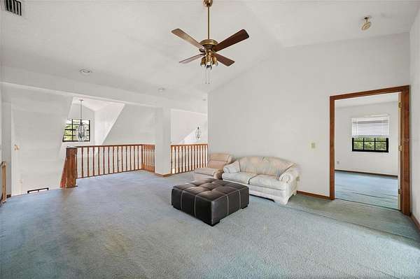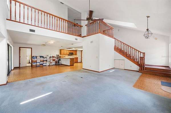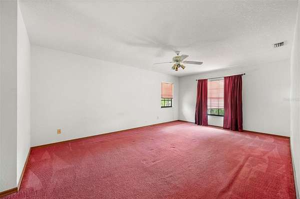 - Ceiling Fans(s), Eat-In Kitchen, High Ceilings, Open Floorplan, Primary Bedroom Main Floor, Solid Wood Cabinets, Split Bedroom, Thermostat, Vaulted Ceiling(s), Walk-In Closet(s), Window Treatments