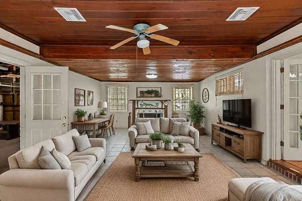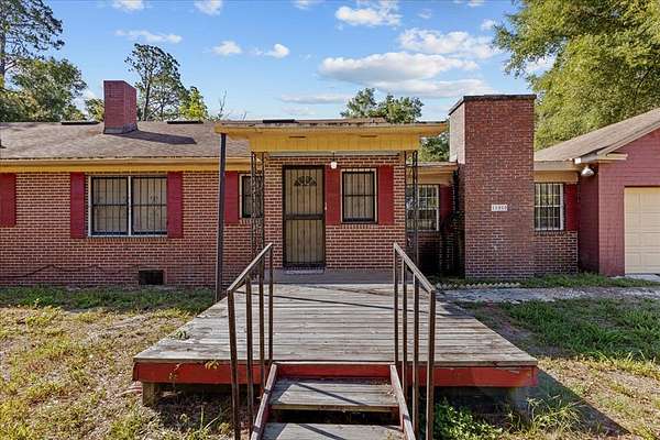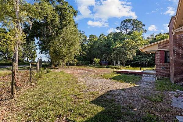 Welcome to this charming 3-bedroom, 3-bathroom brick home, perfectly situated on a spacious 2.3-acre corner lot in the heart of Chiefland. Boasting 2,232 sq ft of heated and cooled living space, this property is an ideal blend of character and comfort. Enter the property through a double iron gate entrance on the side or a circular drive in the front, leading to a partially brick courtyard that exudes charm. The landscape features a mix of clearings and majestic oak trees, providing a serene and picturesque setting. Inside, you'll find original wood floors and beautiful wood accent ceilings. The home offers ample space for gatherings, with a large family room and a living room, both equipped with cozy fireplaces. The master bedroom features a built-in wardrobe, and the two additional bedrooms are generously sized. A sizable laundry/utility room includes a full bathroom, adding to the home's convenience. With its unique features and abundant space, this home presents endless possibilities for its next owner. Don't miss the opportunity to own this beautiful property full of character and potential. Walking distance to stores and restaurants. Come take a look and see all that this property has to offer!
