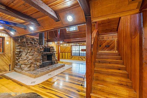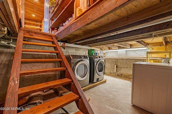 Welcome to 11053 Mulberry Landing Annex in Hilliard, a truly one-of-a-kind property offering unmatched versatility, space, and functionality--ideal for multigenerational living, hobbyists, small business owners, or anyone seeking room to live, work, and entertain. The main residence offers approximately 2,860 square feet of thoughtfully designed living space featuring 4 bedrooms and 3 full bathrooms, a full kitchen, and an interior laundry room. Anchoring the main living area is an oversized river rock fireplace, creating a striking focal point and a warm, inviting atmosphere. The home also features a custom river rock waterfall in the florida room and a jacuzzi, delivering a spa-like retreat right inside the home. Attached to the main home by the carport is a separate additional living unit totaling approximately 588 square feet, complete with 1 bedroom, 1 full bathroom, its own kitchen, and laundry--ideal for extended family, guests, rental income, or a private in-law suite. Vehicle and workspace capacity are exceptional. In addition to the 2-car attached carport, the property features a massive detached 4-car garage and workshop totaling approximately 3,419 square feet. This impressive structure includes vehicle lifts, a bathroom, a laundry room, and extensive storage, making it perfect for mechanics, collectors, contractors, or serious hobbyists. Designed for entertaining and outdoor living, the property boasts a fully equipped outdoor kitchen featuring four large industrial-size grills and smokers, along with seating for eight, creating the perfect setup for gatherings, events, or weekend cookouts. The outdoor experience continues with a private pond, complete with a dock featuring a spacious seating area for eight people and stairs providing direct access for launching or enjoying a boat on the pondan ideal setting for relaxing, fishing, or unwinding at the end of the day. Additional highlights include three RV hookups for guests or recreational use, as well as a separate two-story structure currently used as a chicken coop, offering even more flexibility for agricultural use, storage, or creative repurposing. This property delivers a rare combination of residential comfort, multigenerational or income potential, expansive utility space, and outdoor amenities, all in one remarkable setting. Opportunities like this are seldom availableschedule your private showing to fully appreciate everything this unique property has to offer.