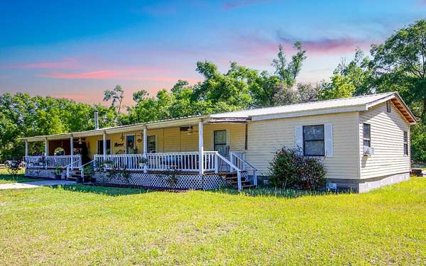 Welcome to your slice of country living in Live Oak, Florida, this well-maintained 4 bed/2 bath doublewide offers 2,052 SF of living space on 29 beautiful acres. Sit back and enjoy quiet mornings or evening sunsets from the nearly full-length front porch overlooking your expansive acreage. Approximately 24 acres are already fenced and cross-fenced into multiple sections, making it ideal for livestock, horses, or anyone needing space and separation for animals, while the remaining acreage offers additional room to expand or customize. Inside, the home features a spacious layout with four bedrooms, including two additional rooms that can easily be used as bedrooms, an office, or flex space depending on your needs. Updates include new flooring installed in 2020, a remodeled master bathroom, a tankless water heater, and a metal roof that is only one year old. The living area is warm and inviting with a wood-burning fireplace designed with a protective exterior, offering both charm and safety. Outside, you’ll also find a second well and power source already in place, perfect for future expansion, an additional homesite, or agricultural use. A barn structure with approximately 12 stalls is located on the property and offers great potential with some repairs, adding even more value for those looking to create a working farm or equestrian setup. If you've been looking for acreage, a home, and room to grow, this one is ready for you!