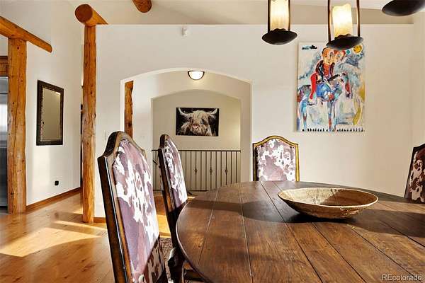 Set on a coveted Soda Creek lot with panoramic 360-degree mountain views, this exceptional Evergreen residence offers a refined take on foothills living. Walls of windows frame expansive vistas of the Continental Divide and surrounding peaks, bringing in consistent natural light and a strong connection to the landscape. Classic rustic mountain architecture is expressed through exposed beams, custom sliding barnwood doors, and ideal southern exposure.