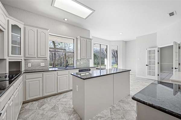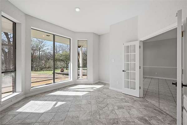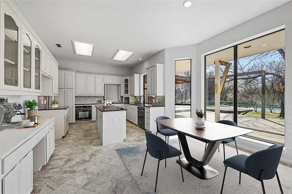Imagine driving through a gated entrance to your own 5-acre retreat, where winding trails and mature trees create a peaceful escape filled with abundant wildlife. This sprawling single-story home offers the perfect blend of secluded country living and modern comfort. The heart of the home is a beautifully renovated kitchen graced with freshly painted cabinets, granite countertops, an upgraded backsplash, and a functional island. Thoughtful additions like an appliance garage and a pocket door make the space as practical as it is stylish. Many rooms offer stunning views of the wooded backyard through large windows that flood the home with natural light. The interior has been refreshed with new paint on the walls, ceilings, and trim, along with updated light fixtures, ceiling fans, and hardware. Two cozy fireplaces—one in the living room and one in the game room—provide a warm ambiance for quiet evenings. For those working from home, the dedicated office showcases elegant French doors for added privacy. The spacious primary suite serves as a true getaway, boasting private access to the backyard deck, a jetted tub, an oversized shower, and a dual-sink quartz vanity. A massive walk-in closet with built-ins ensures plenty of storage, while all secondary bedrooms also feature their own walk-in closets. Step outside to an entertainer’s paradise where a massive deck leads to a large, replastered pool and a separate hot tub. The property is fully equipped for hobbies and storage with an oversized 3-car garage, a separate storage building, and a large three-sided covered carport perfect for a boat, RV, or additional vehicles. Other features include LED lighting and a freshly painted exterior, plus a recently replaced roof, pool pump, and diving board. Perfectly situated with easy access to 35E, the scenic shores of Lake Lewisville, and Corps of Engineers land, this estate offers the ultimate private lifestyle without sacrificing convenience.