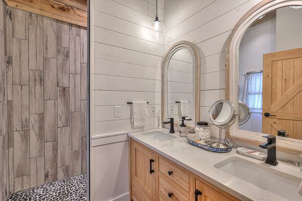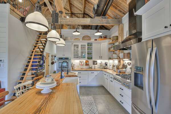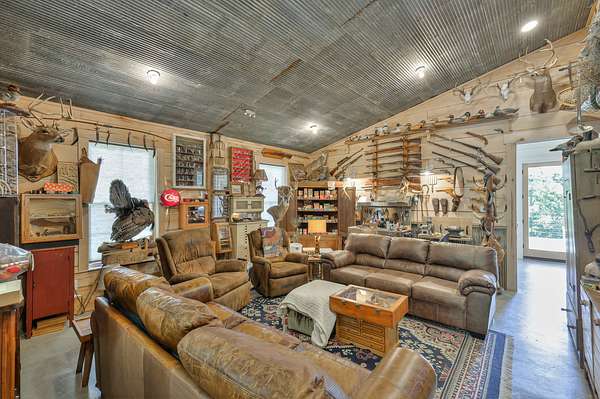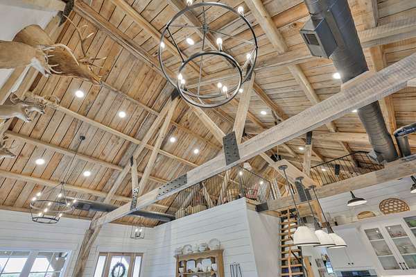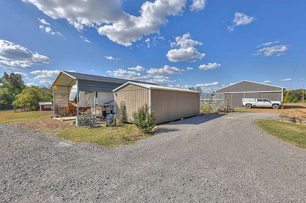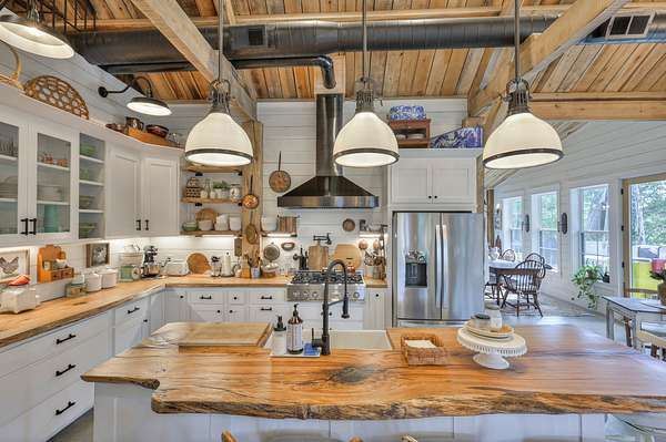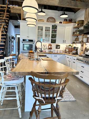 Dream Timber Frame Estate On 26 Acres with Amazing Creek Views! This designer timber frame estate blends privacy and rustic elegance with modern comforts, boasting 26 creek-front acres with stunning Sugar Creek views, and just minutes from town. 'Inside, discover open concept living with 10 ft shiplap, exposed beams,multi-zone heated concrete floors, and a gas fireplace, flowing to huge, covered porches. The chef`s kitchen features Z-Line appliances, live-edge oak counter tops, custom cabinets and a butler`s pantry. A main-floor primary suite offers beautiful farms views, exposed beams, and walk-in shower, while upstairs, a loft bunk room provides cozy retreat and storage. A large first floor second bedroom suite doubles as a family room. The property is a dream with 5-bay 40x60 barn, a 34x14 shop/storage with A/C, greenhouse, RV hookups, a finished studio/office additional building sites and income potential. This home is fully spray foam insulated with multi systems for ultimate comfort and efficiency, standing seam metal roof, and beautiful wood doors This Tennessee gem is an entertainer`s paradise and a tranquil escape, all within 60 miles of Nashville!