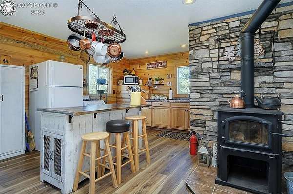 DISCOVER the charm of this beautifully crafted 768 SQFT cabin, perfectly situated on 5 acres of trees and grassy meadows. This thoughtfully designed, open-concept space seamlessly integrates the living, dining, kitchen, and bedroom areas, creating a warm and inviting atmosphere. Stunning tongue & groove vaulted ceilings enhance the sense of space and character, while acid-washed concrete and luxury vinyl plank flooring offers both style and durability. Stay cozy year-round with a wood stove for those chilly nights and propane wall heat for added convenience, while the bathroom finishes off the cabin. Step outside and enjoy the fresh air from the covered front porch, perfect for morning coffee or evening relaxation. A 20x20 workshop and garage with roll-up doors offers ample space for projects, storage, or hobbies. This property provides the perfect blend of rustic charm and modern comforts in a natural setting, with electricity, propane, and a 1700 gallon cistern. Whether you're seeking a weekend escape or a full-time residence, this cabin is a rare find that you won't want to miss! Call today to schedule a tour!