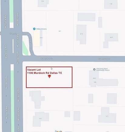 Prime Corner Lot! Motivated seller! This vacant, pretty flat lot on the corner of Queensway Street & Murdock Road is a fantastic opportunity for builders, investors, your new home, or anyone looking to develop in an established neighborhood. Nearby are convenience stores, single-family homes, and church - for more information about zoning, reach out, and I will send you a link. Convenient location with easy access to freeways, schools, shopping, and parks - just 1 mile from Trinity Forest Adventure Park, nearby is Gateway Park & Horse Trail. Whether you're a builder, investor, or homeowner-to-be, this lot provides a fantastic opportunity in a well-connected location. Don't wait--land in Dallas is in demand!