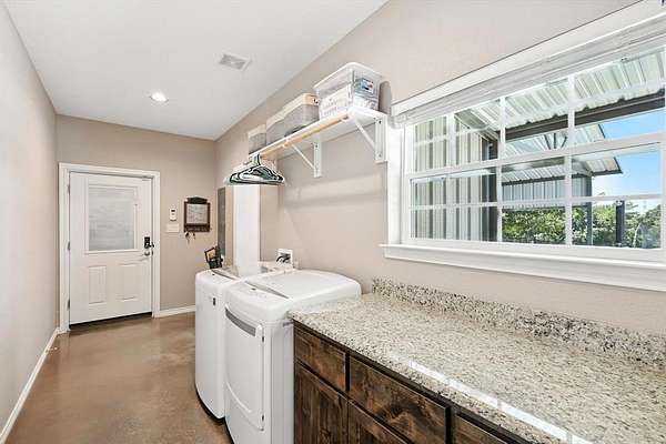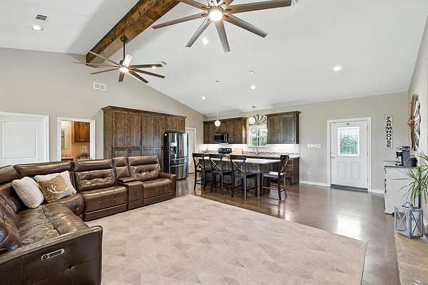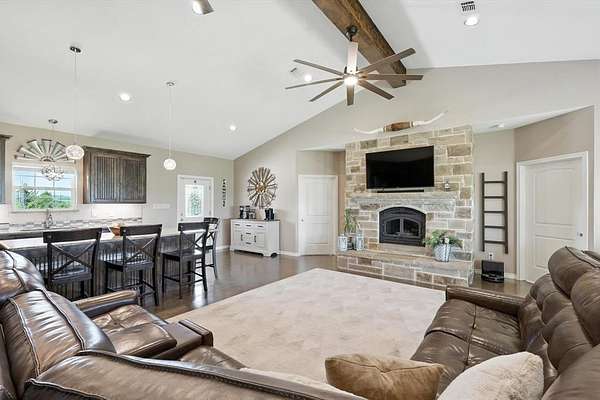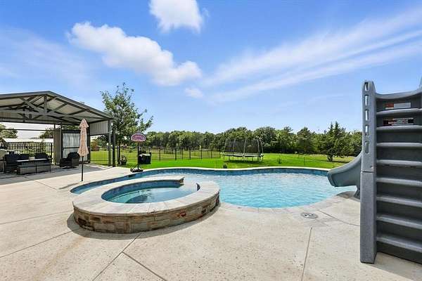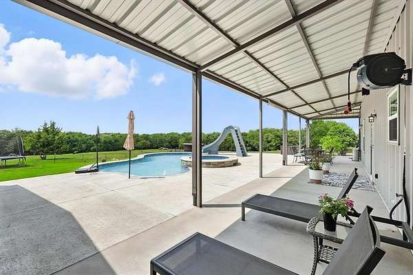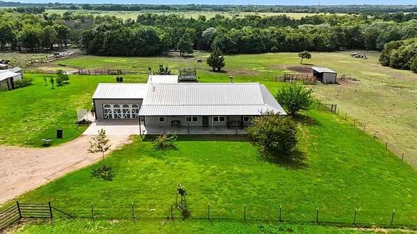 Welcome to your dream country retreat! Situated on over 15 acres, this beautifully maintained property offers the perfect blend of rural charm, modern amenities, and self-sufficiency all just approximately 20 minutes from Sherman and 35 minutes from McKinney. The home features wraparound porches, a wood-burning stove insert in the fireplace, spray foam insulation for energy efficiency, and a whole-house generator. The oversized garage includes an 8x18 door, providing space for trucks and storage. Inside, you'll find stunning knotty alder custom cabinets, adding warmth and character. The expansive kitchen is designed for both function and gathering, featuring an extra-large island and a huge walk-in pantry--perfect for entertaining or stocking up for country living. A spacious laundry and mud room offers room for organization and storage. Enjoy outdoor living with a gorgeous 2-year-old pool, a hot tub and slide, with fencing. A covered patio provides space for relaxing or hosting, and an outdoor bathroom with a sink and shower for rinsing off after a swim or a working outside. A 30x50 shop adds versatility, featuring paid-for solar panels, an 8kW Outback inverter, and backup batteries to help keep electric bills low and power running during outages. Inside the shop, you'll find guest quarters with a kitchen and full bathroom, with the option to expand the space if desired. The land is fenced and cross-fenced with 2 pastures for separating livestock. A lean-to provides shelter for animals, and the property includes a chicken coop, peach, pear, plum, and persimmon trees, along with mature pecan trees. An agricultural exemption is in place, helping to keep property taxes low. Additional features include a water filtration system for the main home, security cameras, a storm shelter for added safety, and a automatic gated entrance. If you've been dreaming of peaceful country living with every amenity already in place, this property checks all the boxes. Welcome home!