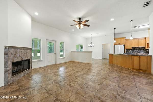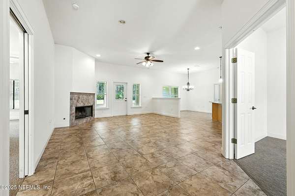 From I-295 N and Kings Rd (U.S. 1) go North on Kings Rd. Turn left onto Trout River Blvd and right onto Old Kings Rd. Turn left onto Plummer Rd. Go approximately 4 miles to entrance of Jacksonville Ranch Club on left, go through gate, take right on Kings Crossing Dr, right on Blazing Ridge Ct, home on left.