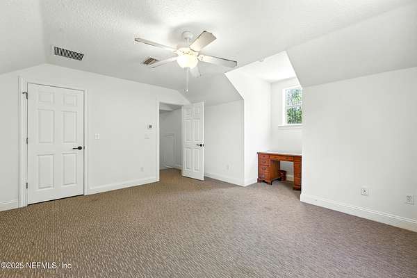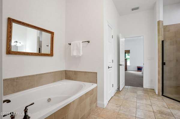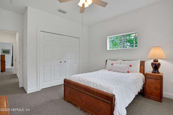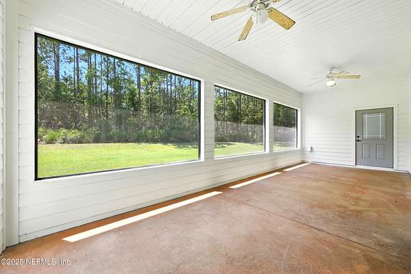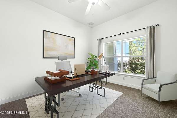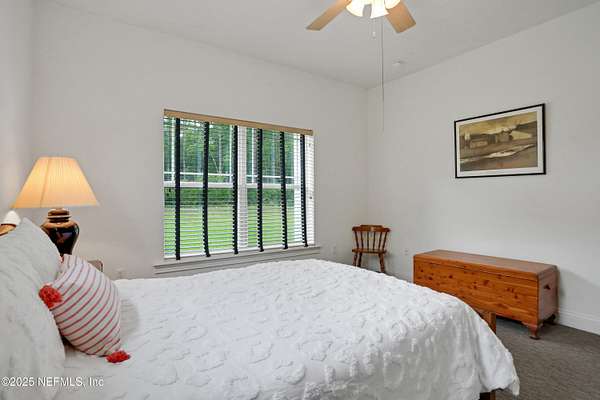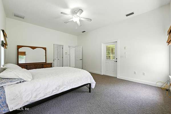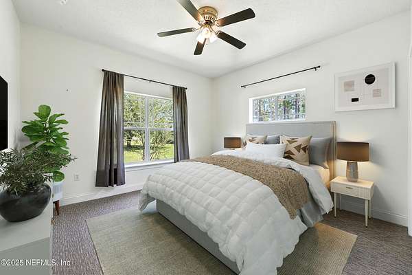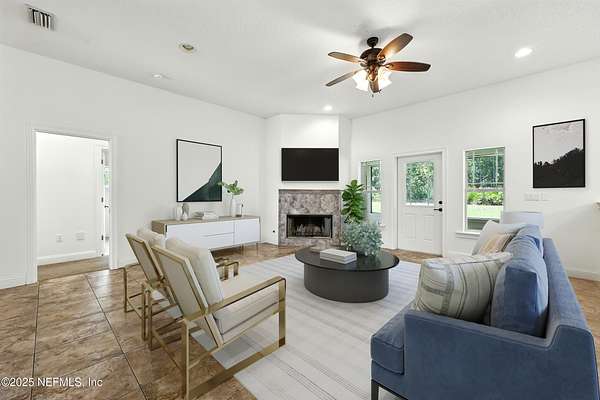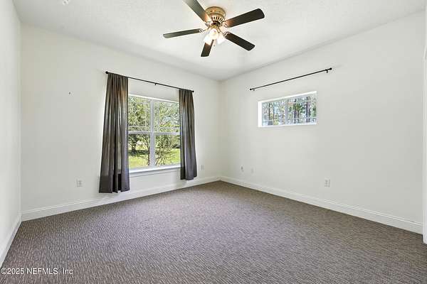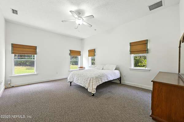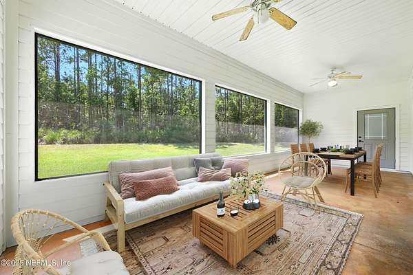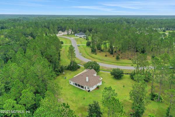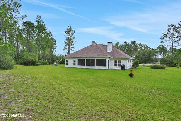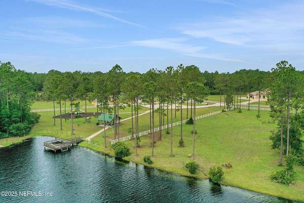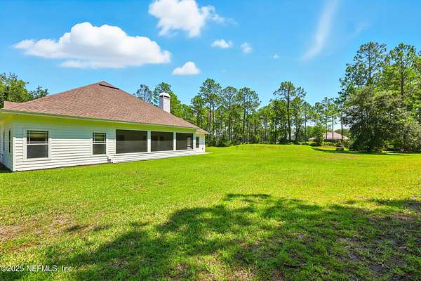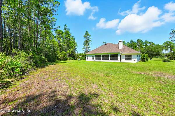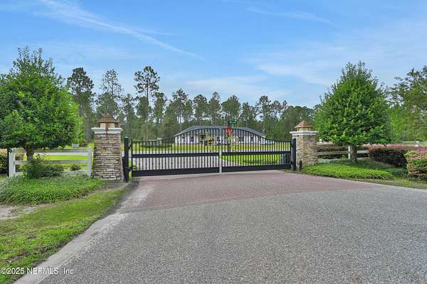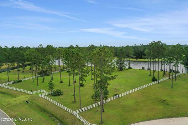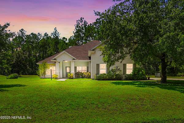 Discover the perfect blend of classic craftsmanship and modern amenities in this craftsman-style residence, nestled on a generous 2.7-acre lot within the gated equestrian community of Jacksonville Ranch Club. This beautifully maintained home offers 2,407 square feet of living space and a host of features designed for both comfort and style. With 4 bedrooms and 3 bathrooms, this home provides ample space for family and guests. The primary bedroom boasts a luxurious ensuite with a separate tub and shower, complemented by a large walk-in closet. Two additional bedrooms and a full bathroom are conveniently located downstairs, along with a functional office space. The upstairs guest suite includes a dedicated bathroom, offering a serene retreat for visitors. Enjoy the screened-in lanai, perfect for relaxing and entertaining in the fresh air. Additional features include a spacious 2-car garage that provides ample storage and convenience. This craftsman-style gem combines functionality with aesthetic appeal, making it a standout choice in Jacksonville Ranch Club.