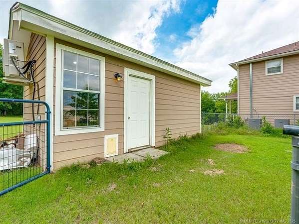The fenced-in backyard is ideal for children, pets, or outdoor enjoyment. A covered back patio provides a great space for relaxing or entertaining. The property also features an outbuilding with a concrete floor, mini split system, and can lighting--perfect for a workshop, studio, or home office.