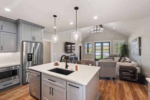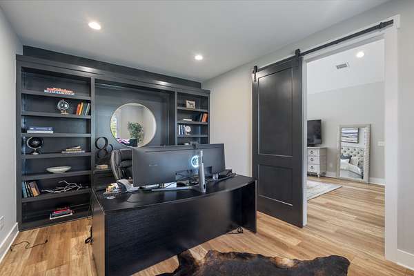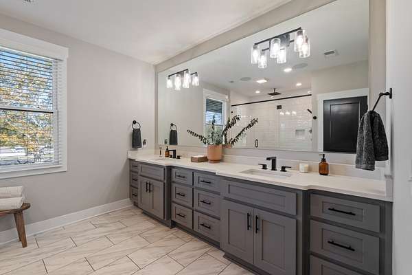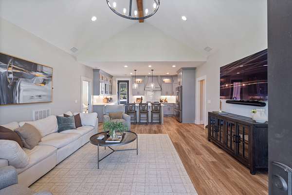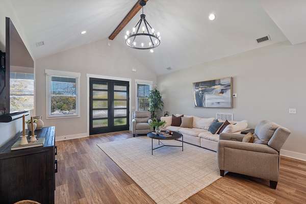Designed for entertaining and everyday comfort, this 3-bedroom (or 2 + study), 2-bath home spans 2,892 sq. ft. and showcases vaulted ceilings, rich finishes, and an inviting open layout. The chef's kitchen features stainless steel Kitchen Aid Pro Series appliances, an oversized island, quartz counters, and custom cabinetry. The primary suite feels like a private retreat with a spa-inspired bath, dual vanities, walk-in shower and huge 16x19 walk in closet. The 30x30 bonus room provides versatile flex space for a home gym, studio, or media room with additional unfinished space above.