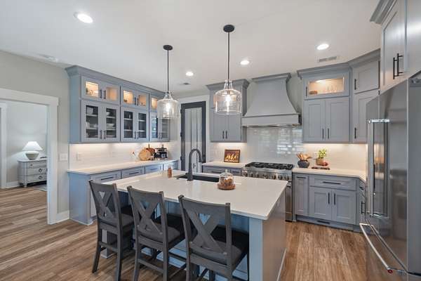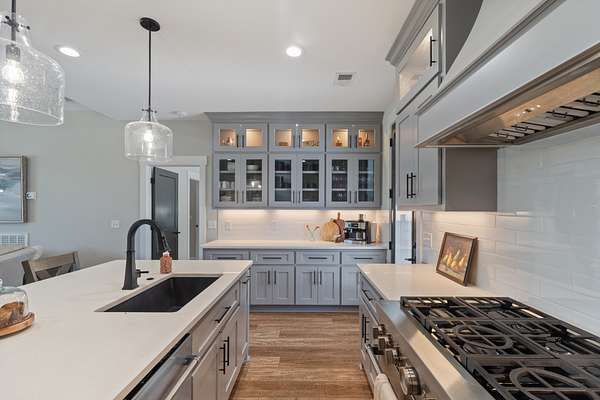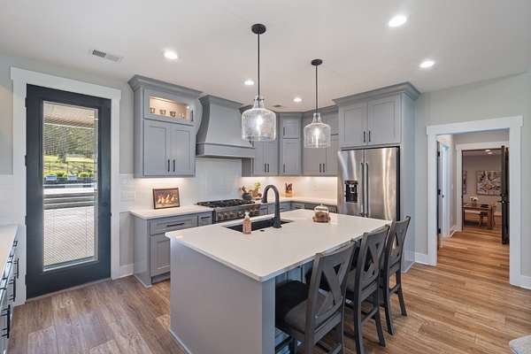 Outdoorsmen & car enthusiasts will love the 2,600 sq. ft. heated & cooled detached barn, featuring custom finishes, storage, & room for multiple vehicles. The barn kitchen features stone backdrop with up lighting, 14' of soft close Hickory cabinets & 4' roll up garage door opening over bar for outdoor parties. Built by Willow Grove Construction, every element of this property has been thoughtfully designed for lifestyle, functionality, & recreation.