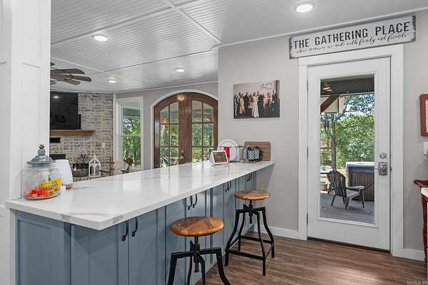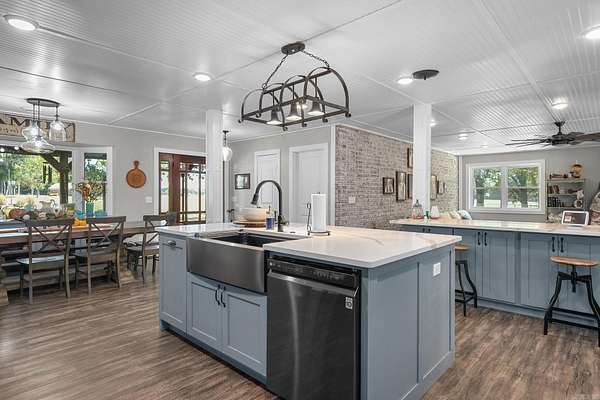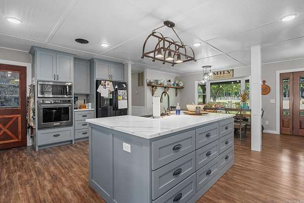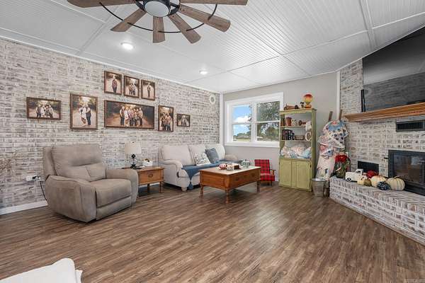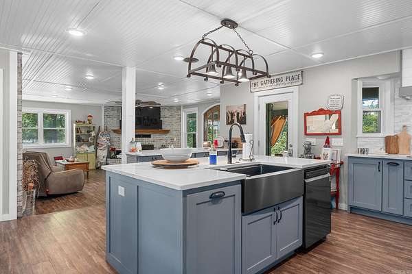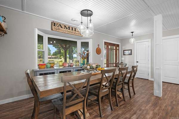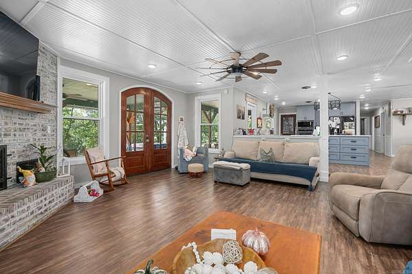 Love Where You Live in Muldrow! Imagine waking up to peaceful views on 3.5+- acres, sipping coffee from a rocking chair on the front porch as the sun rises over your private retreat, or ending the day with a glass of sweet tea on the back patio. Step inside to a beautifully remodeled 3 bedroom, 2 bath home where daily life unfolds in an open kitchen, dining, and living space centered around a warm, inviting fireplace. The kitchen features a large, beautiful island with quartz countertops, abundant cabinetry, and a spacious dining room designed to gather family and friends for holidays and celebrations. The spacious primary suite feels like a spa getaway with a custom tiled walk-in shower and a luxurious soaker tub--perfect for relaxing after a long day. Outside, you'll find room to entertain with backyard cookouts, evenings by the fire, and wide-open space for kids, pets, or simply enjoying the fresh air. A detached shop with one-car garage and electric expands the possibilities, complete with a finished bonus room ideal for hobbies, an office, or retreat, plus a lean-to for your boat, mower, or side-by-side.