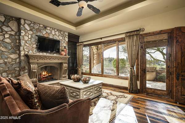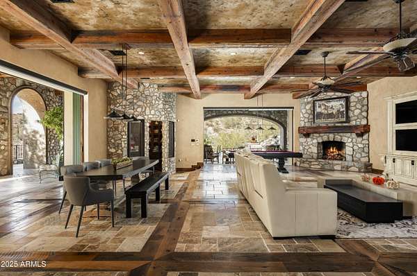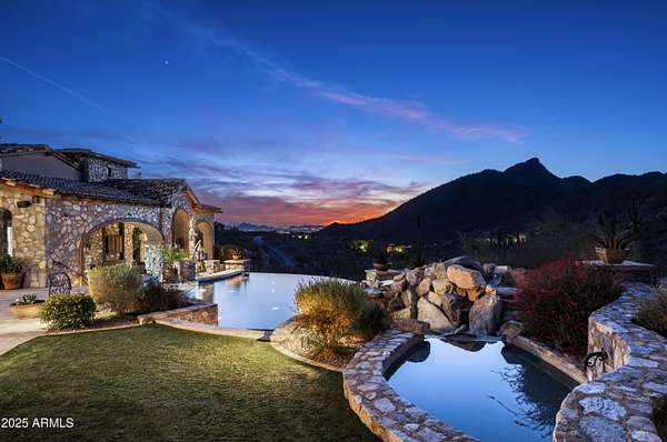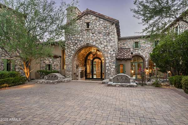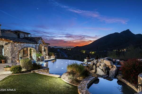 Nestled in the prestigious enclave of Silverleaf's Upper Canyon, this extraordinary estate epitomizes luxury, elegance, and privacy. Spanning an impressive 11,491 square feet, this architectural masterpiece is set against the breathtaking backdrop of the majestic McDowell Mountains, offering panoramic 360-degree views from a secluded setting on Silverleaf's most private street. Every inch of this residence exudes craftsmanship, quality, and timeless elegance. Meticulous attention to detail is evident in the bespoke finishes such as the extensive stonework, intricate tressel beams, and the brick ceiling that crowns the gourmet kitchen. Multiple in-motion glass doors seamlessly blend indoor and outdoor living spaces, enhancing the home's harmonious design with the picturesque natural setting. Situated on 2.87 acres, this privately gated estate's thoughtfully designed floor plan caters to both intimate family living and grand entertaining. Boasting five bedrooms, four of which are expansive private suites, this residence ensures comfort and privacy for all. The large great room seamlessly extends to expansive covered patios, where captivating views of majestic mountains, glowing sunsets, city lights, and serene landscape vistas await. Completing this exquisite estate are a private gated drive, a large enclosed motor court, and enchanting outdoor spaces that embody tranquility and beauty. This estate transcends the concept of a home; it is a lifestyle of romance, refinement, and exclusivity, set in the unparalleled surroundings of Silverleaf's most prestigious location.