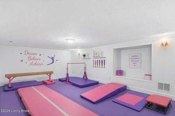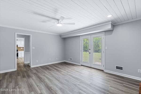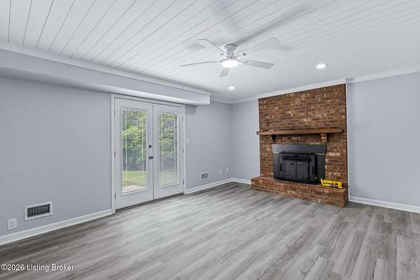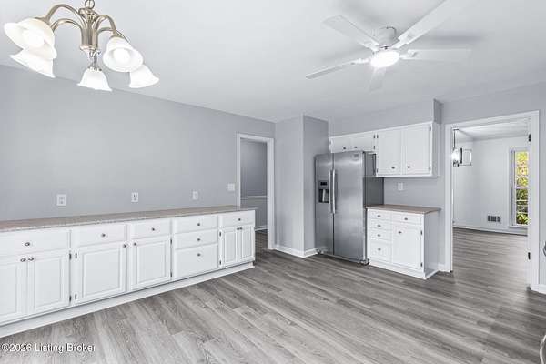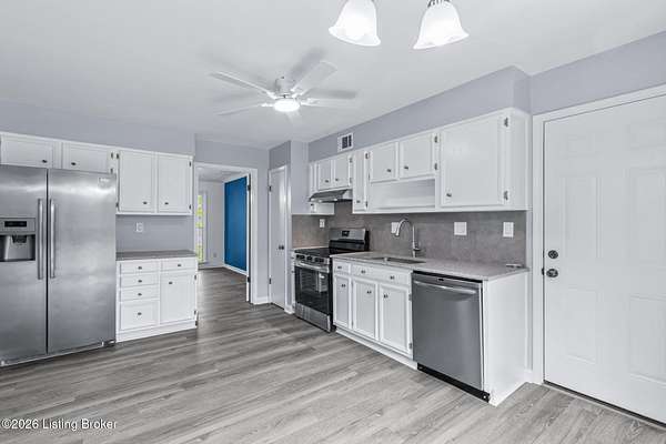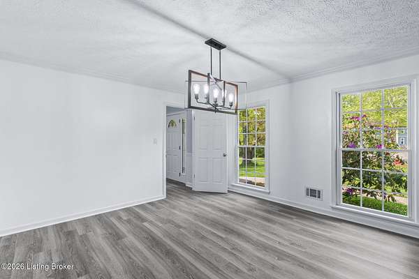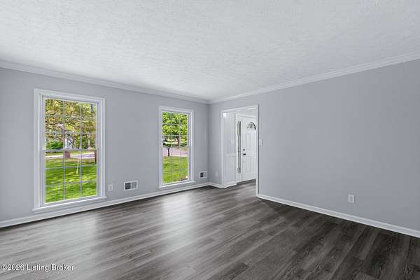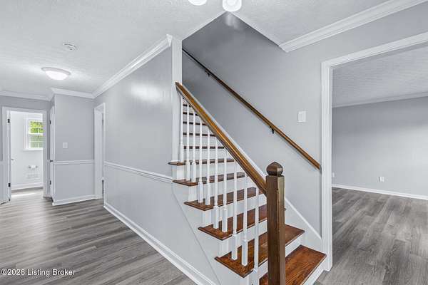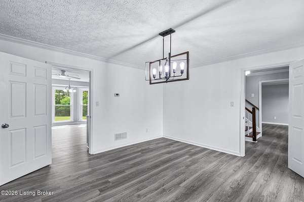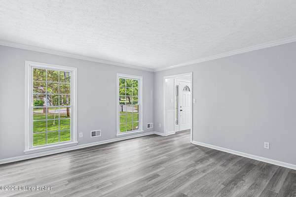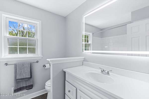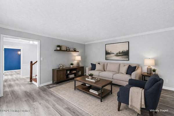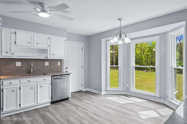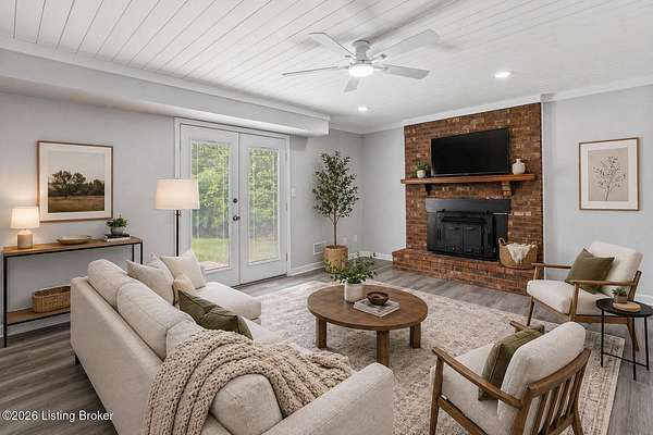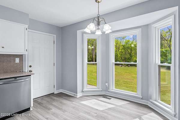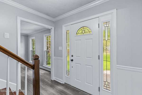 All photos with furniture are virtual staging! Discover the perfect blend of space, comfort, and tranquility in this beautifully updated two-story home located in East Louisville, just across the Shelby County line. Nestled on 1.5 secluded acres, this property offers a peaceful, scenic setting with frequent deer sightings and plenty of room to unwind. Step inside to find a welcoming main floor featuring a formal dining room, a spacious kitchen with recent updates, and charming bay windows that overlook the picturesque backyard. The main level also includes a conveniently located updated half bath, along with a large, cozy living room complete with a fireplace-perfect for relaxing evenings. An additional formal living room adds even more flexibility for entertaining or quiet gatherings. Upstairs, the home offers three generously sized bedrooms and two beautifully updated full bathrooms, providing comfort and convenience for everyone. The partially finished lower level adds valuable extra space, perfect for a recreation room, home gym, or media area, along with a laundry area and abundant storage. Additional highlights include a large two-car attached garage and numerous updates throughout the home, including flooring, paint, fixtures, kitchen improvements, and bathroom renovations-truly move-in ready. If you're looking for space, updates, and a serene setting, this home is a must-see.