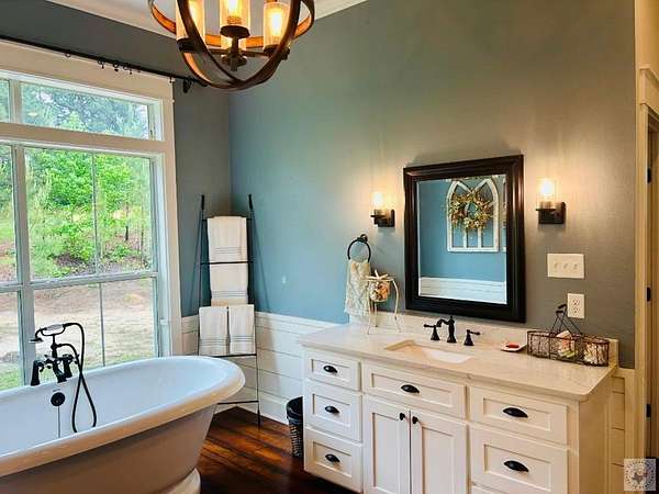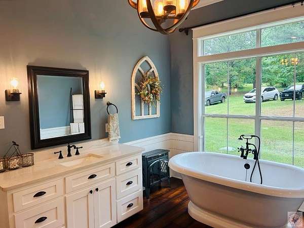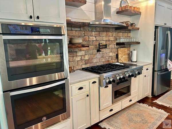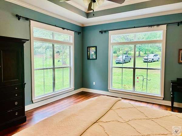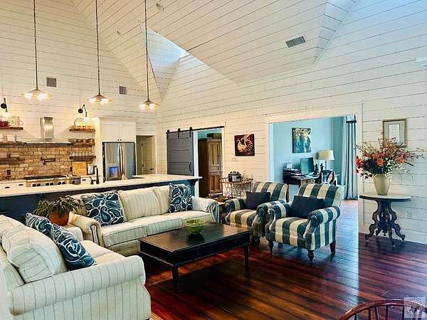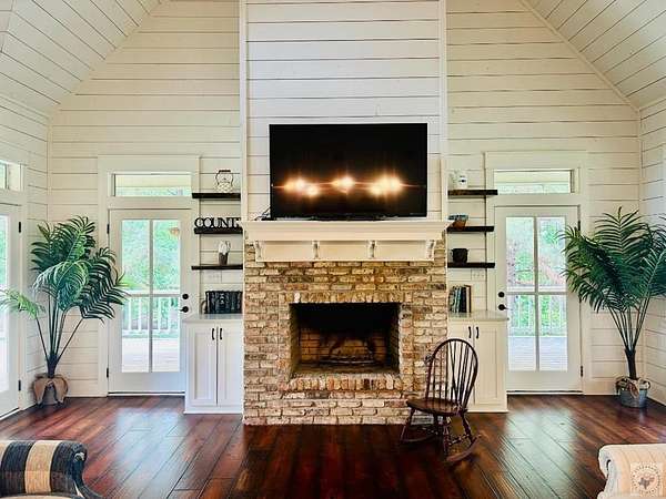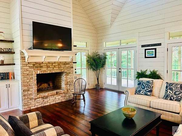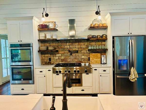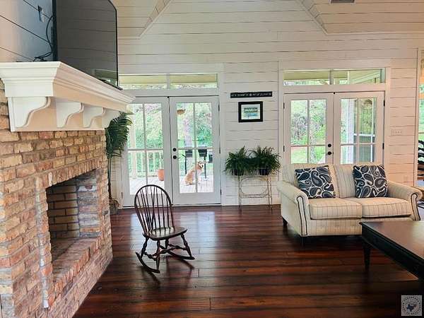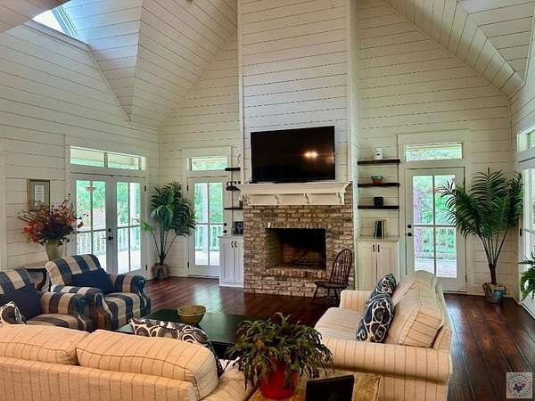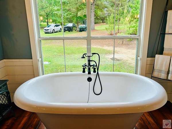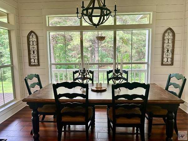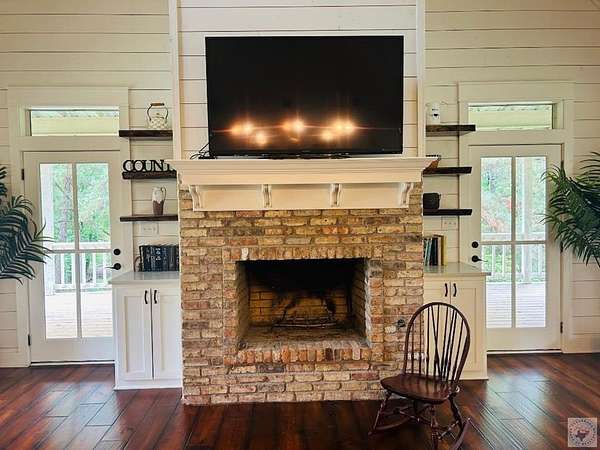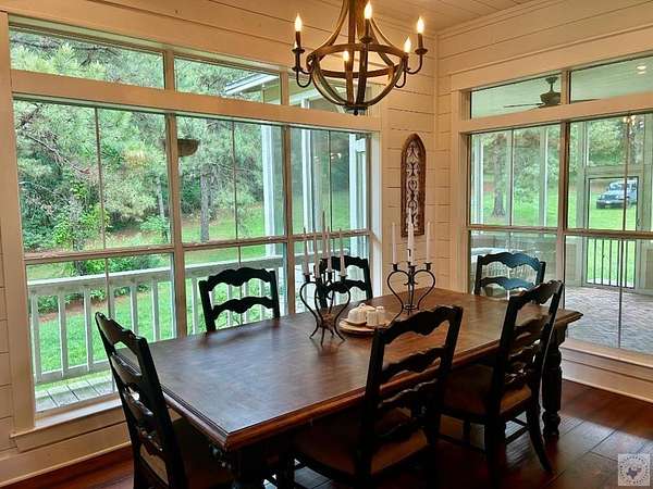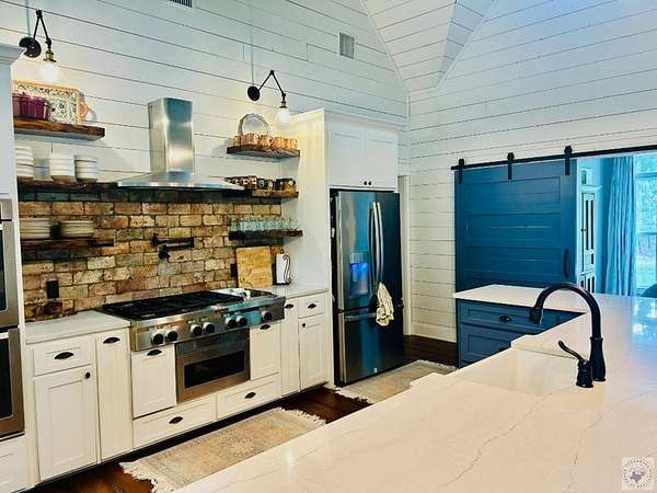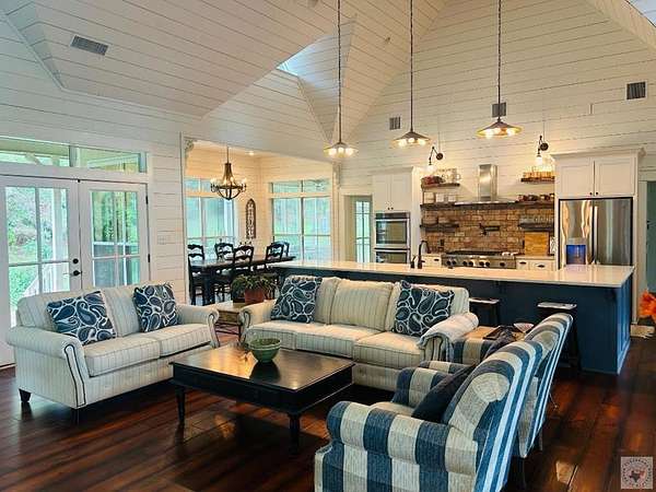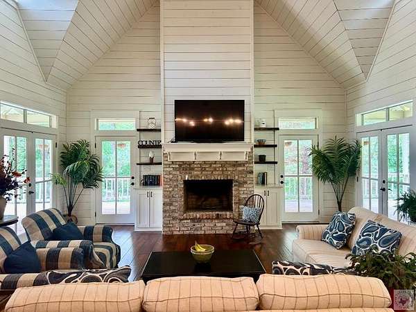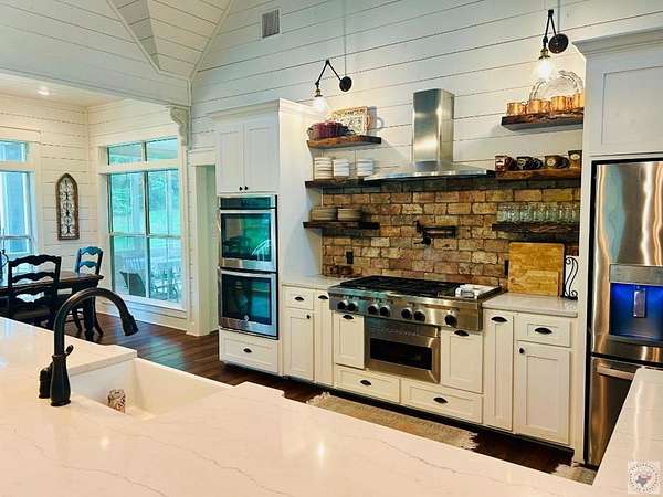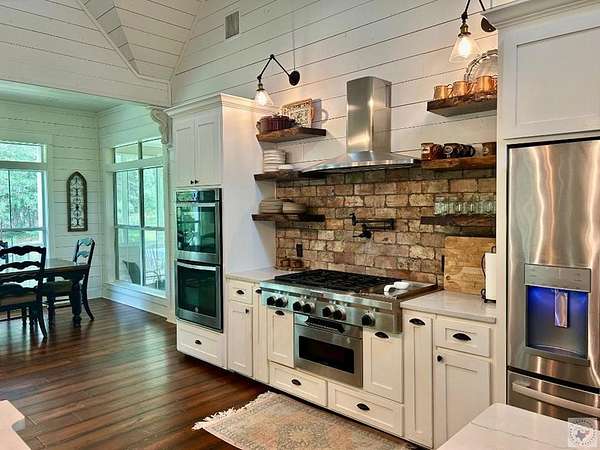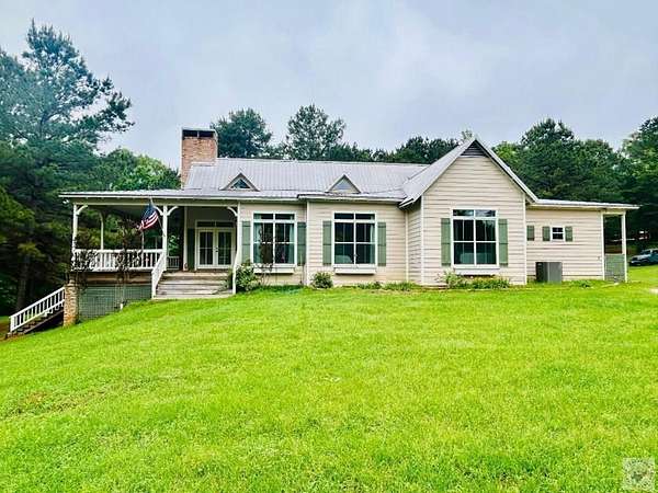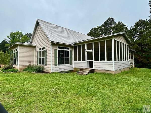 Escape to your own Northeast Texas country estate! This charming farmhouse style home sits on 68.5 mostly wooded acres, offering privacy, beauty and room to roam. This 3 bedroom, 3 bath home offers 2450 square feet and is full of character, featuring stunning shiplap ceilings and abundant windows that fill every room with natural light. The home is finished with durable hardie board siding and a metal roof for long lasting quality and low maintenance. The open concept living, kitchen and dining area is perfect for gatherings with family and friends. The kitchen is a standout with large island, beautiful brick backsplash, stainless appliances and wood flooring through out. A double wood burning fireplace warms both the family room an the back porch where you can relax and enjoy the peaceful views of pond. The extra large primary suite is a true retreat, featuring an amazing on suite with separate vanities, and oversized walk in shower and relaxing soaker tub. A spacious laundry room and pantry adds convenience and functionality to the home. Step outside to a wrap around porch and a spacious screened porch with gorgeous brick floors, ideal for taking in the serene surroundings year round. The land is mostly wooded, providing a true country feel and includes a 1900 square foot pole barn with stall, perfect for livestock or equipment. Located in Marietta, Texas and Linden-Kildare ISD, this one of a kind property offers the perfect blend of comfort, charm and country living.