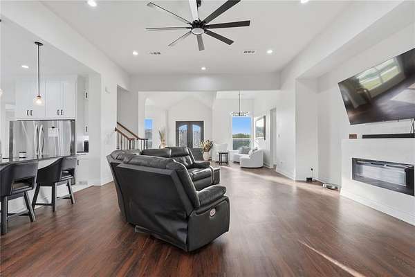 Welcome to 1107 Lily Court, an exceptional estate nestled on 1.7 acres in the highly sought after Lakeridge community of Grand Prairie. This impressive residence offers approximately 5700 square feet of refined living space, thoughtfully designed with both luxury and functionality in mind. Featuring 6 spacious bedrooms and 5.5 beautifully appointed bathrooms, the home showcases a modern open concept layout that creates an immediate sense of grandeur upon entry. Expansive living areas are complemented by an abundance of natural light streaming through oversized windows, enhancing the home’s bright and airy ambiance. At the heart of the home, the chef’s kitchen is a true showpiece, complete with custom cabinetry, high end finishes, and an oversized island perfect for entertaining or everyday living. The seamless flow between the kitchen, dining, and living spaces makes this home ideal for hosting on any scale. The private primary suite serves as a luxurious retreat, featuring its own fireplace and a spa inspired ensuite bath designed for relaxation and comfort. Additional highlights include a dedicated media room, generously sized secondary bedrooms, and thoughtfully designed spaces throughout. Adding to the property’s appeal is a separate guest house, offering privacy and flexibility for visitors, extended family, or potential income opportunities. Situated with convenient access to Highways 67, 287, and I-20, and located within Cedar Hill ISD, this home combines peaceful estate style living with easy access to shopping, dining, and everyday conveniences. Experience the perfect blend of elegance, space, and modern living schedule your private showing today.