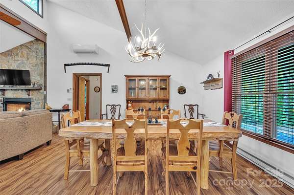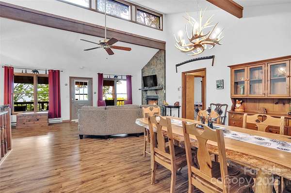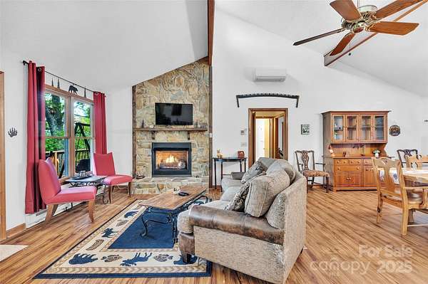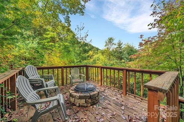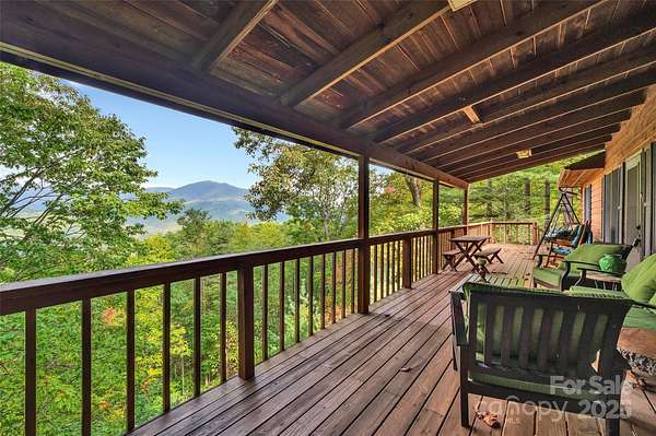 Enjoy sipping your coffee on the spacious deck that runs the full length of the house overlooking the valley or perhaps simply enjoying the tranquility of the lower deck with a crackling fire in the firepit. Sitting at 3650 feet of elevation ensures cooler temperatures on those warm summer days. This move-in ready home offers 2.69 acres of privacy within the heart of Maggie Valley. This well-maintained cabin boasts spectacular year- round mountain views and provides easy paved access all the way up to the front door or to the lower gravel parking area for plenty of parking space. Featuring an open dining and living area with a gas fireplace, the home is great for entertaining. The main level has 3 beds/2 baths, including the master BR/BA. The lower level has a 2nd master bedroom and bath, a large storage room, and enough space to park 3 cars and an ATV in the garage and workshop area. The bedroom and bath downstairs can be locked to maintain an owner refuge if you want to rent. A whole house generator is included for peace of mind! Whether you are looking for a peaceful mountain retreat or a year-round residence, this property delivers the perfect blend of comfort and nature. Don't miss this opportunity to own a piece of mountain paradise (available furnished).