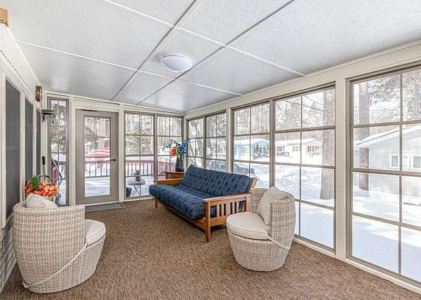 Lakeland Village 55+ community. Welcome to this nicely updated 2 bedroom 1 bath home with attached 1 car garage, a deck and a large beautiful sunroom that's perfect for relaxing on those summer days. This home is move in ready and is being sold completely furnished. Whether you're looking for a year round residence, or a place to enjoy in the summer, Lakeland Village has alot to offer including a sandy beach, fire pit, fish cleaning house, laundry facilities, and a club house for residences to enjoy. In addition, you can rent a yearly dock space on Lake Shisebogama to keep your boat docked and ready to go. Shishebogama is a two lake chain that features roughly 1000 acres of water to fish, cruise, and explore. Monthly $715 lot rent includes garbage, cable TV, lawn care and water/sewer. Conveniently located close to Minocqua with shopping and restaurants options close by. Enjoy the Up North Experience for a fraction of the price. Schedule your showing now.