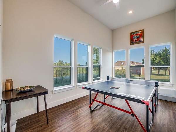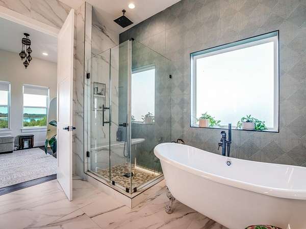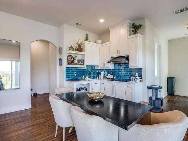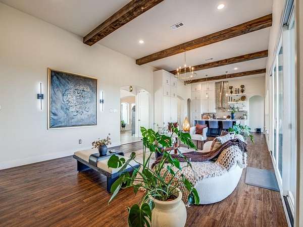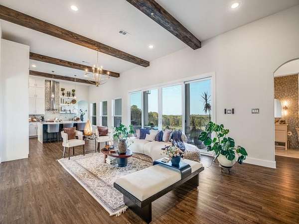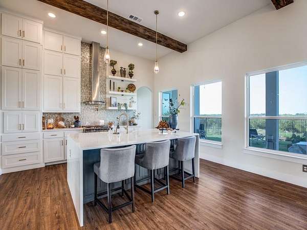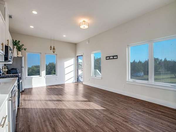 Custom multi-generational estate situated on over 4 acres of beautiful unincorporated property adjoining Corps of Engineers land on Lake Lavon! This Mediterranean-inspired home comprises 6 bedrooms, 7 bathrooms, 5 kitchens, 4 living rooms, 4 dining areas, 2 offices, media room, & game room - a unique layout offering functionality, privacy, & accessibility without compromising a sense of community & inclusion. Both upstairs wings of the home feature their own private exterior entries that lead into living rooms with kitchenettes for independent living. The front entry features double glass doors that welcome you into the foyer flanked by the light-filled dining room & the curved staircase with wrought iron balusters. The living room enjoys a focal gas fireplace & picture windows for scenic views. Right off of this gathering space is a guest bathroom & game room which could also be used as a hobby room or exercise room. A media room with stadium-style seating provides an additional entertaining space. A dedicated home office with built-in cabinetry offers a tranquil environment for remote work. The main kitchen features a built-in refrigerator & freezer, commercial gas range, vented hood, quartz waterfall island with storage, an abundance of cabinets, glass mosaic tile backsplash, & pot filler. A true chef's kitchen with a huge walk-in pantry is just around the corner creating the perfect place for no-fuss meal prep. Guests staying overnight will appreciate the private downstairs guest suite. Upstairs you'll find an incredible living room with a kitchenette that anchors the primary suite & four additional bedrooms with gorgeous en suite bathrooms. LVP flooring throughout the main living areas & bedrooms! Both garages are plumbed for an additional washer & dryer & include 2 universal EV charging stations. Exquisite lakeside living surrounded by the sounds of nature, views of the water, & acreage for cows, horses, goats, & chickens!
