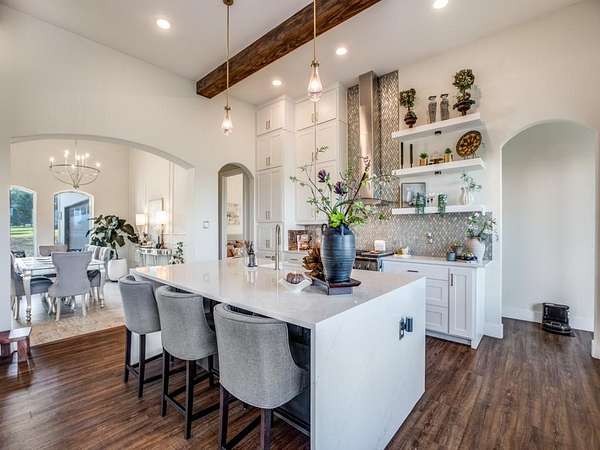 - Built-In Features, Chandelier, Decorative Lighting, Dry Bar, Eat-In Kitchen, High Speed Internet Available, Kitchen Island, Multiple Staircases, Open Floorplan, Wainscoting, Walk-In Closet(s)