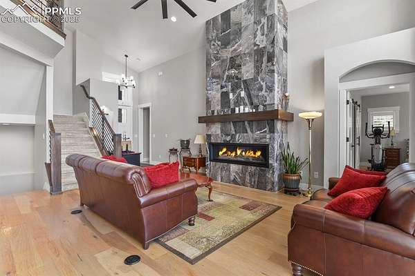 Nestled on 3.5 private acres, this Black Forest gem is the perfect blend of comfort, convenience, and luxury. 6 bedrooms, 5 full baths, open layout highlighted by white oak hardwood floors, soaring ceilings, rich wood beams, hand textured walls, 5" base, solid wood doors, wall of windows flooding the space with natural light. Gourmet chef's kitchen featuring Bosch stainless appliances, waterfall-edged quartz island, soft-close cabinetry, lighted glass cabinets, tile backsplash, crown molding, and walk-in pantry. The Great Room is anchored by a gorgeous linear fireplace, wood mantle, floor-to-ceiling tile, 23' ceiling, and oversized covered composite deck just outsside, perfect for entertaining. Main floor Master Retreat with direct access to the deck and 5-piece en-suite bath with enclosed spa-like wet area-soaking tub, shower bench, multiple shower heads and a real walk-in closet. Additional bedroom and full bath also on the main floor makes for a perfect guest room or home office. Upstairs, 2 more bedrooms, loft/playroom,gameroom, and full bath with double vanity. Walk-out basement with a huge rec room, second kitchen, TV/gaming space, a private, oversized junior suite with its own private full bath, plus a sixth and oversized bedroom and a hall full bath. Walk-out access to the massive 1,900+ sq ft partially covered patio. Driving up to the home, a newly expanded paved driveway leads to the 4-car tandem garage including RV bay. Class 4 roof, covered front porch, safe/storm room, dedicated mechanical room, much more. And dozens of baby Aspen trees and Chokecherries are taking root throughout this new landscape. Welcome to Winsome.