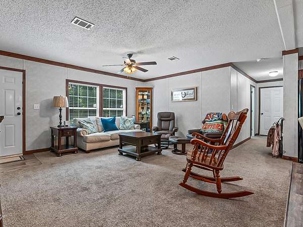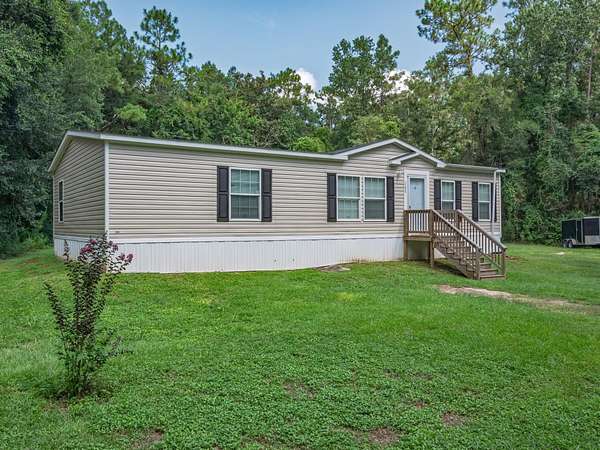 Discover the perfect blend of modern convenience and tranquil country living with this stunning home, nestled on a little over 5 secluded acres. Built in 2022, this like-new manufactured home exudes charm with its exquisite farmhouse finishes and offers an idyllic escape from the hustle and bustle of city life. Step inside to be greeted by an open floor plan that seamlessly connects the living, dining, and kitchen areas, creating a warm and inviting atmosphere perfect for both entertaining and everyday living. The kitchen is a chef's delight, ample counter space, and stylish cabinetry that enhances the farmhouse aesthetic. The luxurious primary bathroom is a private oasis, boasting a garden tub and a separate shower, providing the ultimate relaxation experience. The spacious walk-in closets offer abundant storage, ensuring you have plenty of space for all your belongings. Outside, you'll find expansive yard space, perfect for gardening, outdoor activities, or simply enjoying the serene surroundings. A convenient storage shed provides additional space for tools and equipment, making it easy to maintain the property's beauty. Located near the Wakulla County line, this home offers the best of both worlds: peace and privacy, with the convenience of an easy drive to Tallahassee. Whether you're commuting to work or seeking entertainment and dining options, you'll appreciate the home's strategic location. Move-in ready and waiting for you to call it home, this property is a rare find that combines contemporary living with the charm of country life. Don't miss your chance to own this captivating country retreat.